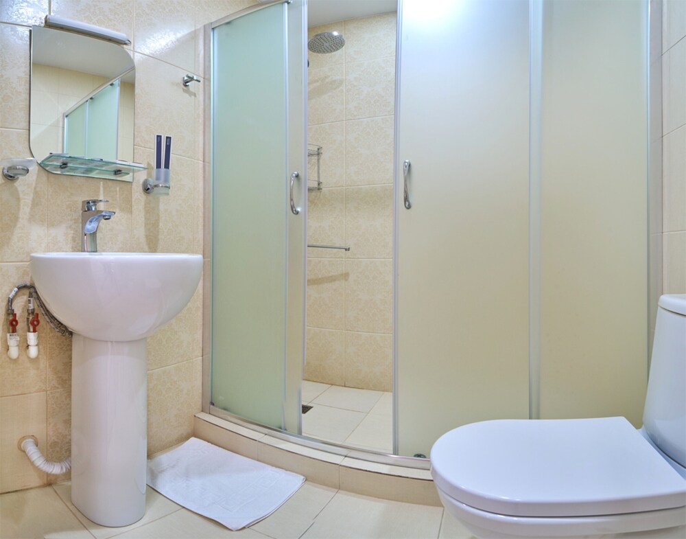 И, в отеле постоянно бывают почасовики так называемые, то есть стены тонкие, слышимость высокая и проходимость большая...это огромный минус...and a huge minus is, this hotel accepts so called hourly customers with thin walls, high audibility and large traffic...