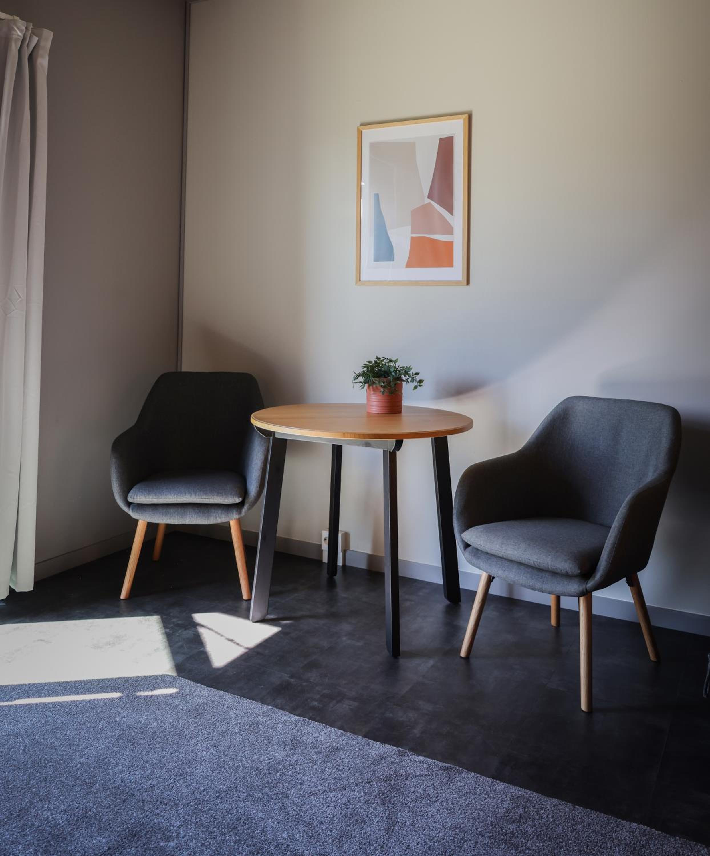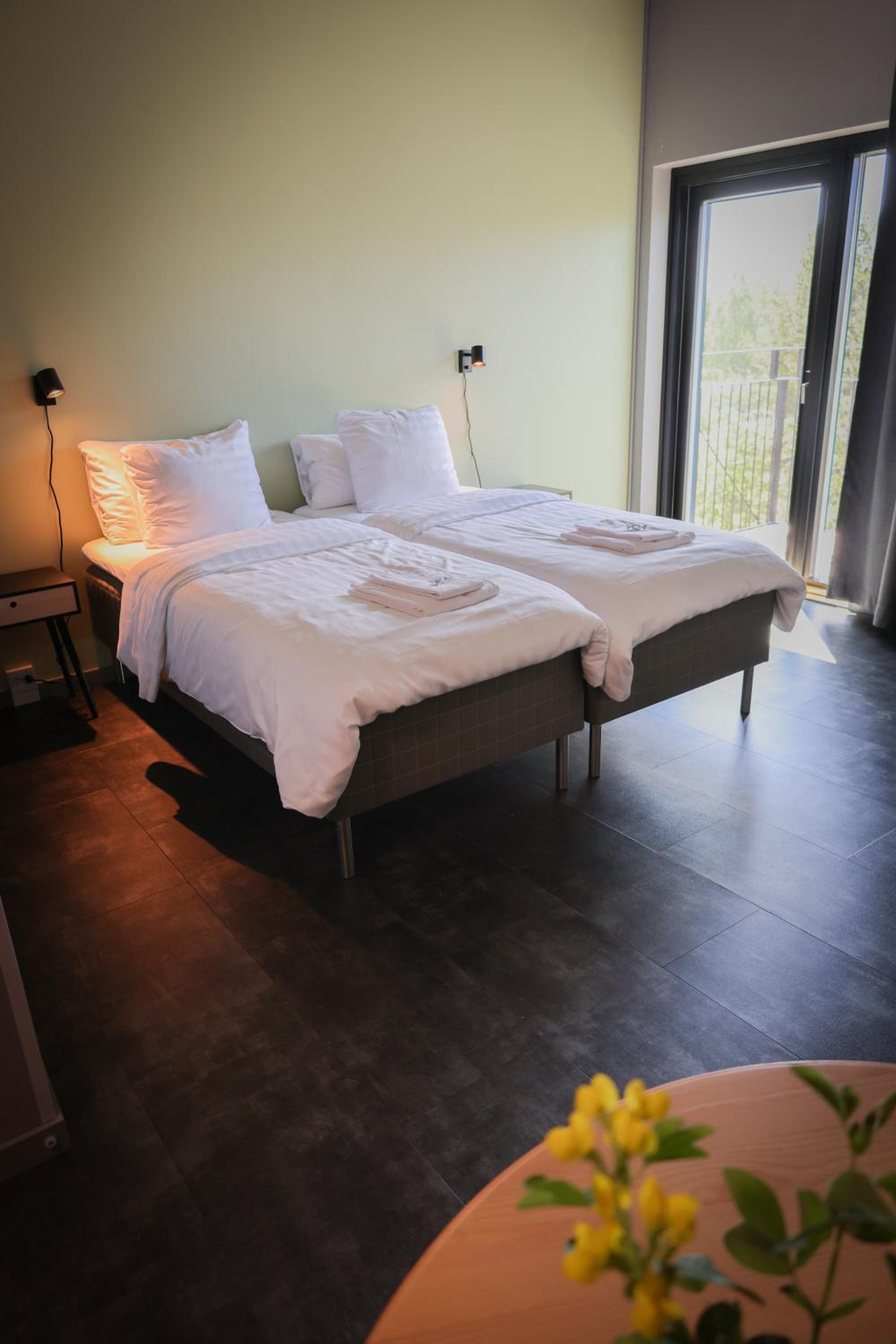 Siisti ja tilava huone. Hiljaista ja rauhallista. Hyvät sängyt ja tv. Jääkaappi, mikro ja vedenkeitin huoneessa mahtava lisä, lisäksi oleskelutila, jossa kahvinkeitin, astiat ym... Todella hyvä kokemus. Alakerrassa tasokas kuntosali. Aion varmasti käydä uudestaan. Aamupala loistava. Modernit tilat ja raikas sisäilma.