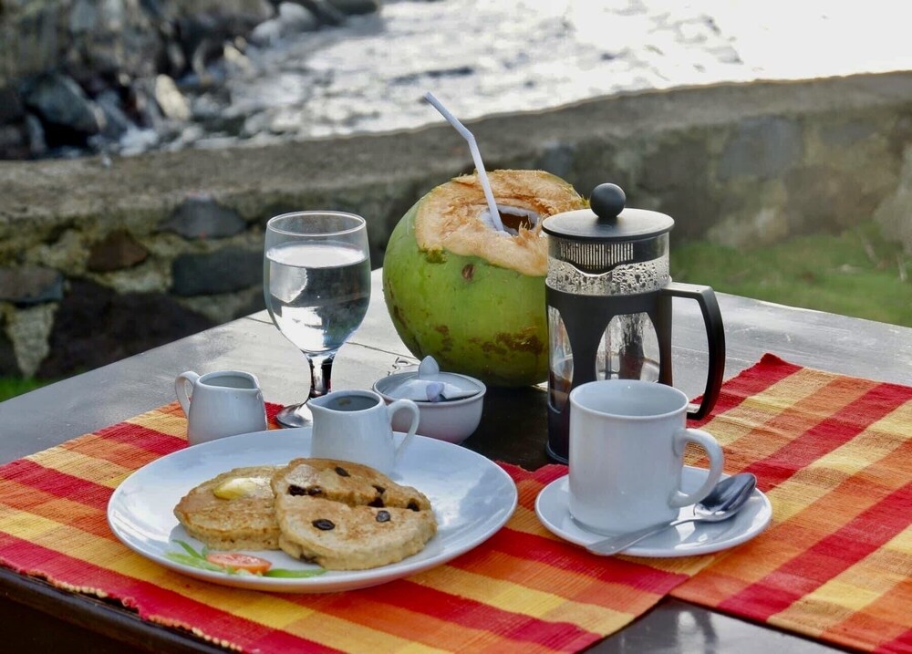 Grace und Vince, die Besitzer, sind unglaublich freundlich und erfüllen annaehernd alle Wünsche. Sie nehmen sich Zeit und sind kommunikativ. Der von uns bewohnte Bungalow war geräumig und sehr schön. Room service komplikationslos nach Zuruf. Die Lage ist optimal, die Sonnenuntergänge. Wirklich sehr zu empfehlen🙂