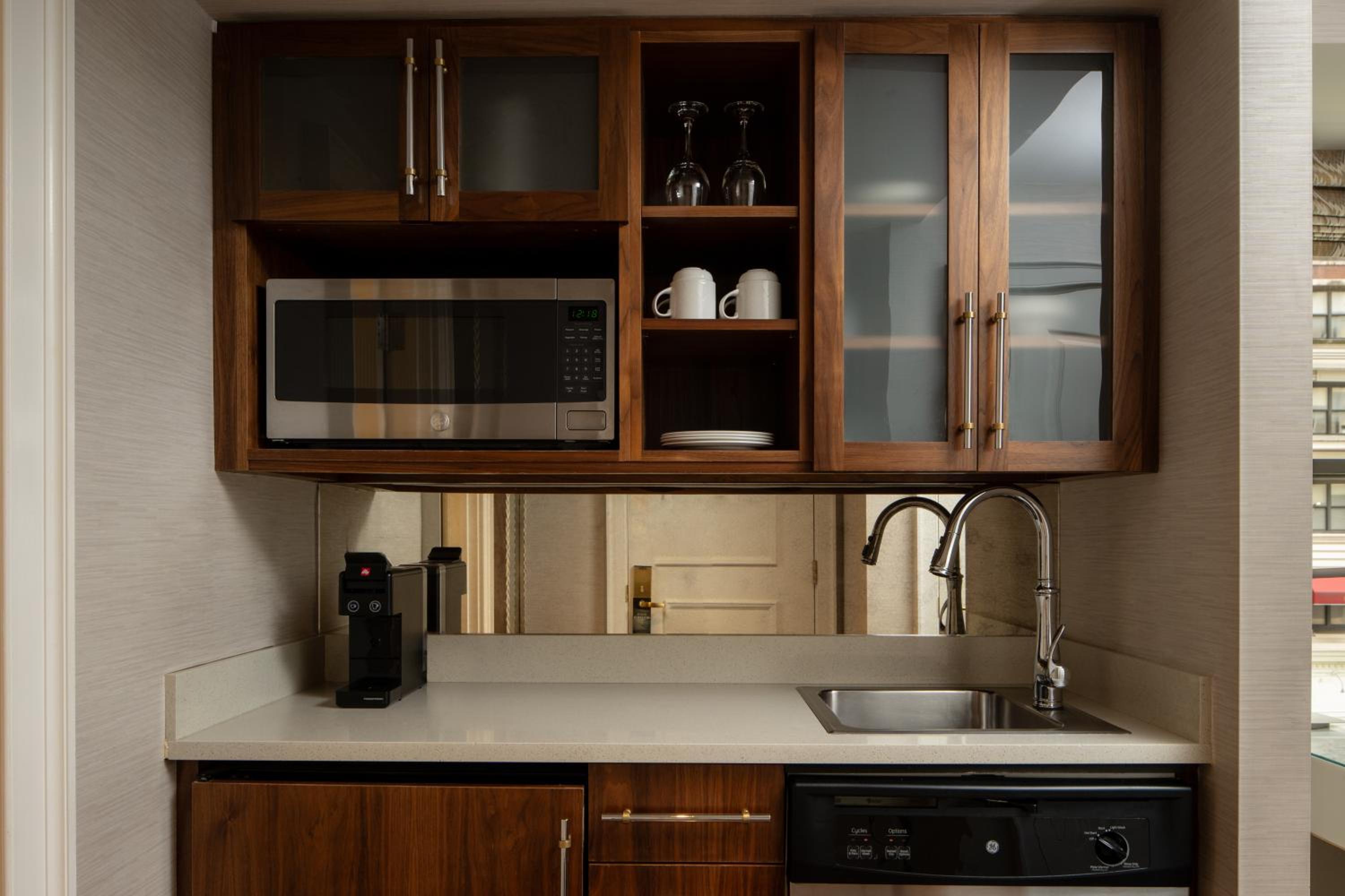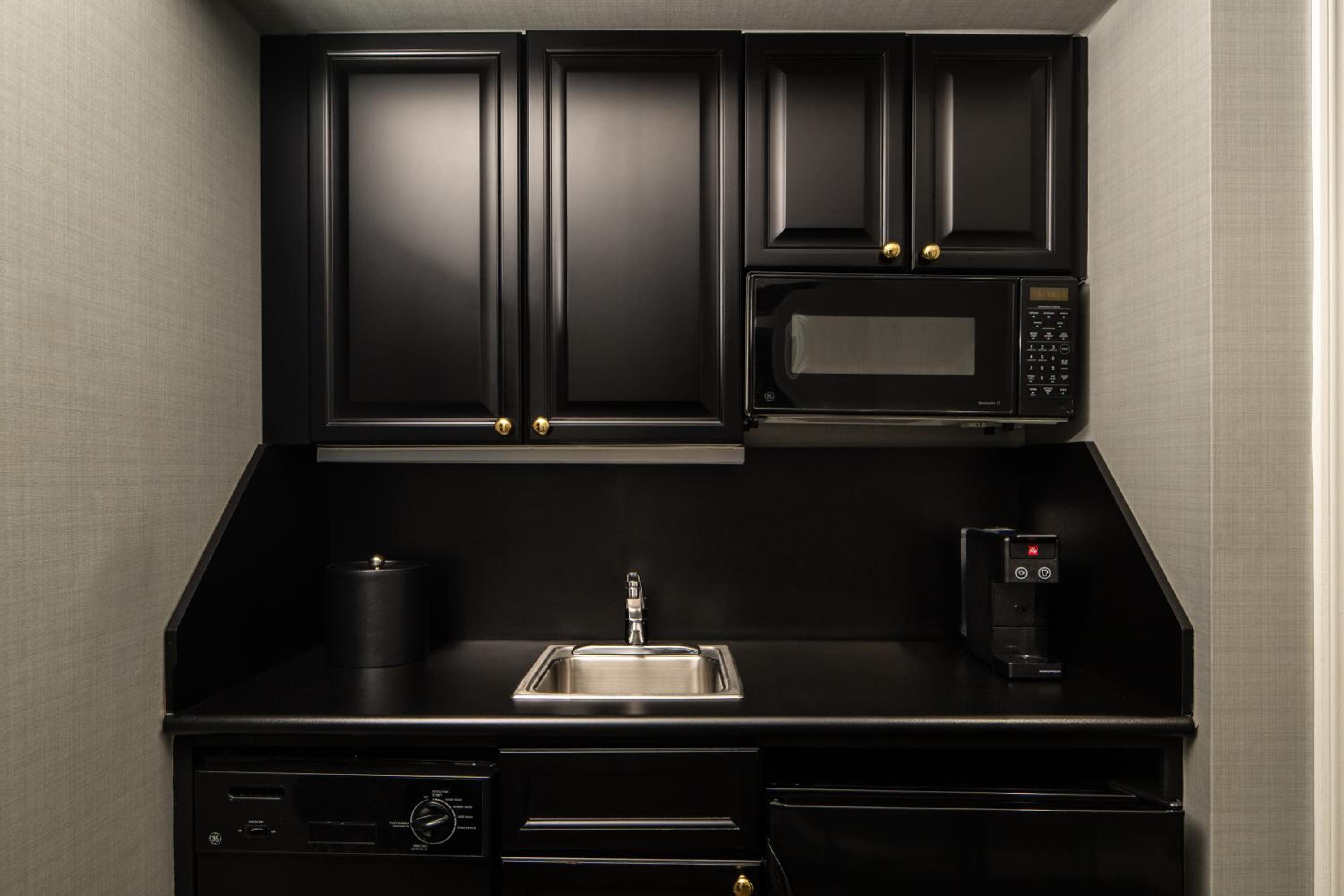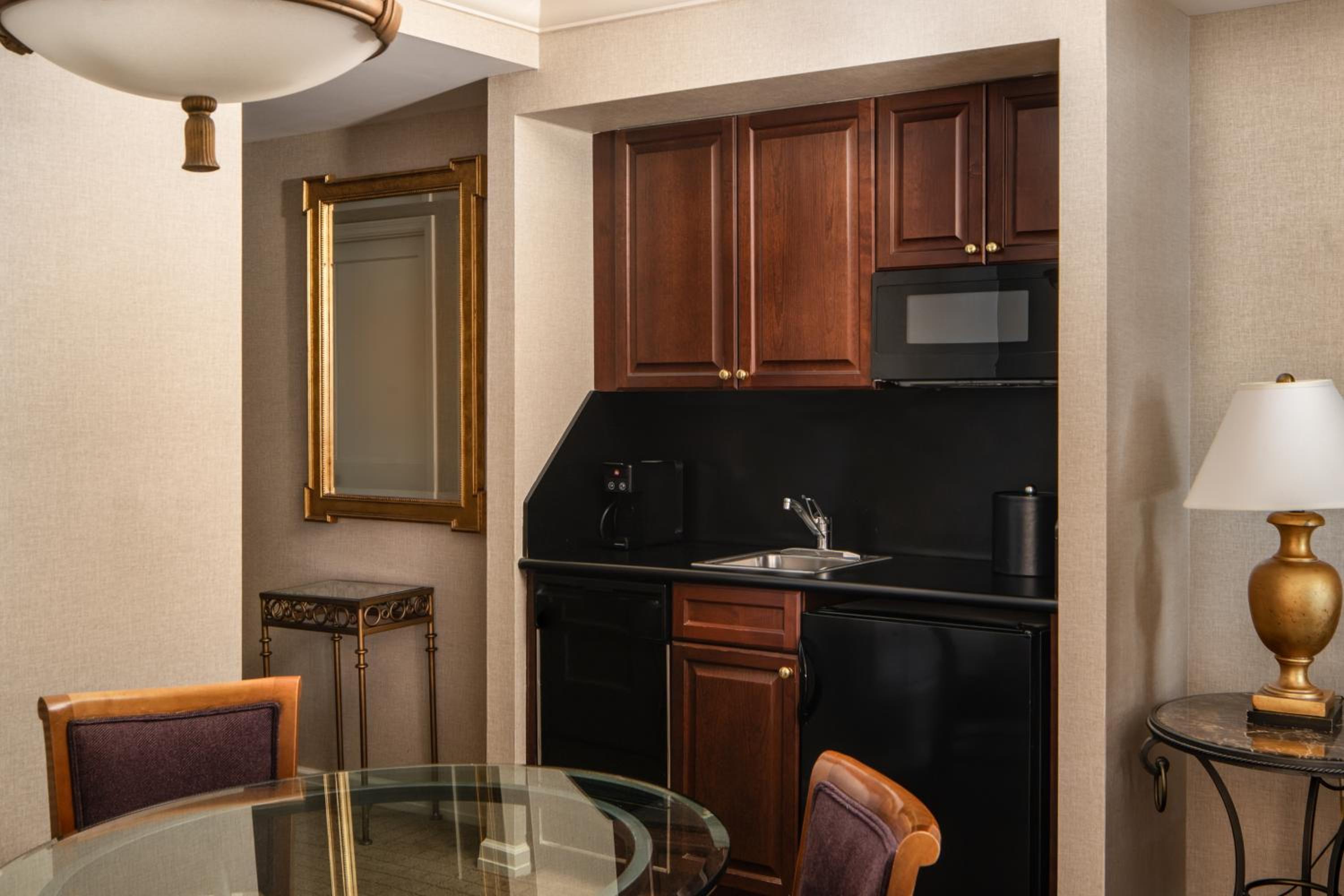 Step into luxury with flat-screen TVs, marble bathrooms, and kitchenettes in every suite. Enjoy the convenience of a coffee maker, work desk, and ironing facilities during your stay.