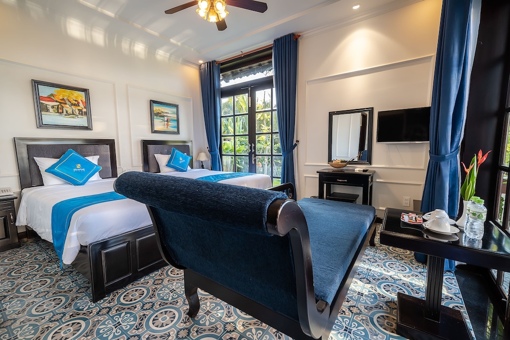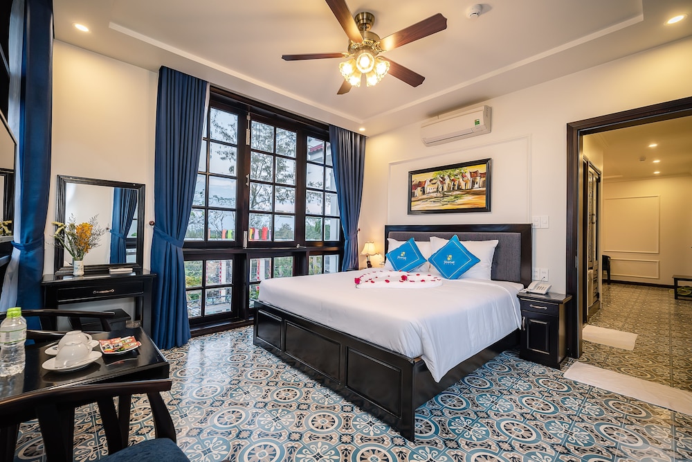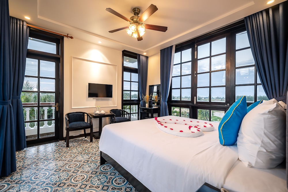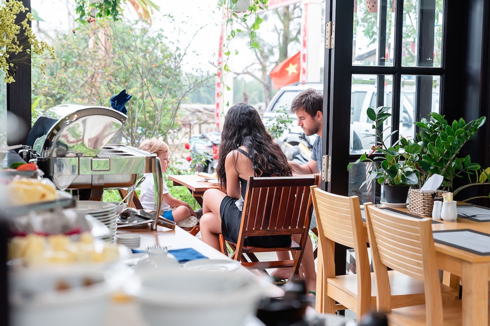 Nous avons choisi cet hotel sans grande espérance. Nous nous sommes trompés. Cet endroit est GÉNIAL ! Petite hotel de quelques chambres tenu par un couple avec leur adorable petit garçon et ses deux chiots, nous avons été absolument soufflés par la taille de la chambre, la qualité du lit, des draps, de la salle de bain et du linge. La cuisine est délicieuse aussi, et tout ça pour une somme dérisoire. A savoir, l’hôtel n’est pas en ville, mais ils proposent d’emmener gratuitement les clients. Hoi An est la plus belle ville du Vietnam, nous avons décidé de rester 2j de plus. L’hôtel est situé non loin d’une route, on entend un peu la circulation le matin mais rien de gênant. Vraiment un super plan !