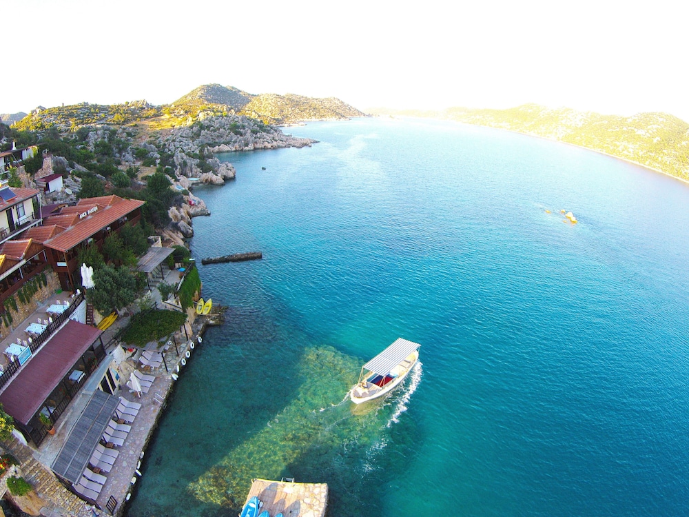 Surrounded by nature, if you are looking for city comforts this place is not for you, but if you want to be away from city chaos is a perfect place, right on the water, turquoise color sea, available water activities like kayaking, canoeing, boat trips to different coves, sunken city etc. Only certain time of day it gets noises due to boat visitors. There is an ancient castle and Lycian tombs that attract tourists. Our room had a balcony with a beautiful sea view, was comfortable and spacious, the air conditioner works perfectly. Food was good but they can add more varieties in their menu though all the hotels/motels in the area had similar menus. On arriving at Simena, the hotel sent a motor boat to pick us up and we had a lovely boat trip to hotel with no cost. We stayed 3 nights and was hard to say goodbye to beautiful turquoise coast. Hoping to visit again