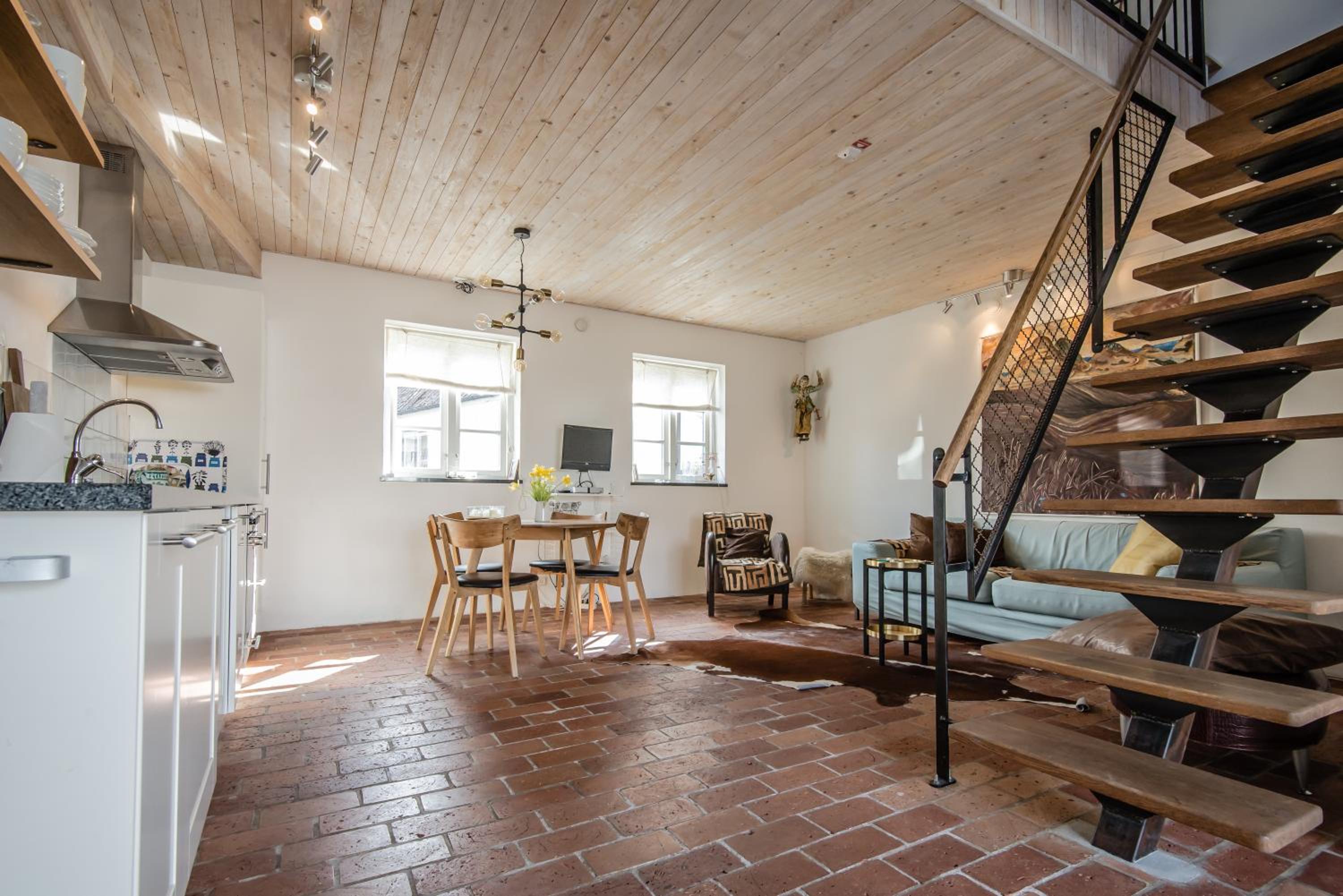 Nestled in a traditional half-timbered house, our accommodations feature limestone-tiled bathrooms, wood-burning stoves, and DVD players. The handmade brick floors and whitewashed walls add a touch of charm to your stay.