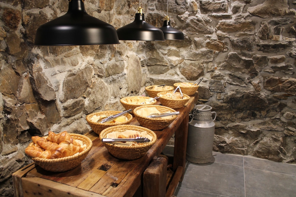 Tres bien accueillis, grande chambre entièrement rénovée avec une excellente literie, tres belle salle de restauration au RDC, typique avec pierres apparentes, poutres et cheminee, pour une bonne fondue puis un petit-déjeuner tres complet avec des produits maison ou locaux...un excellent rapport qualité/prix !