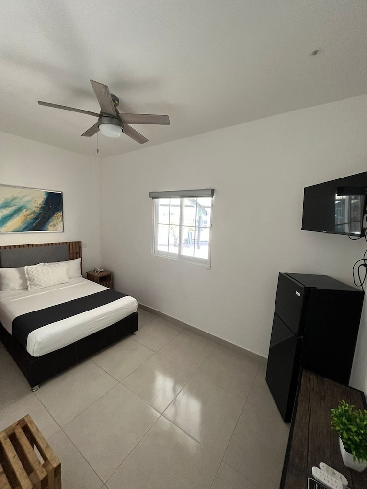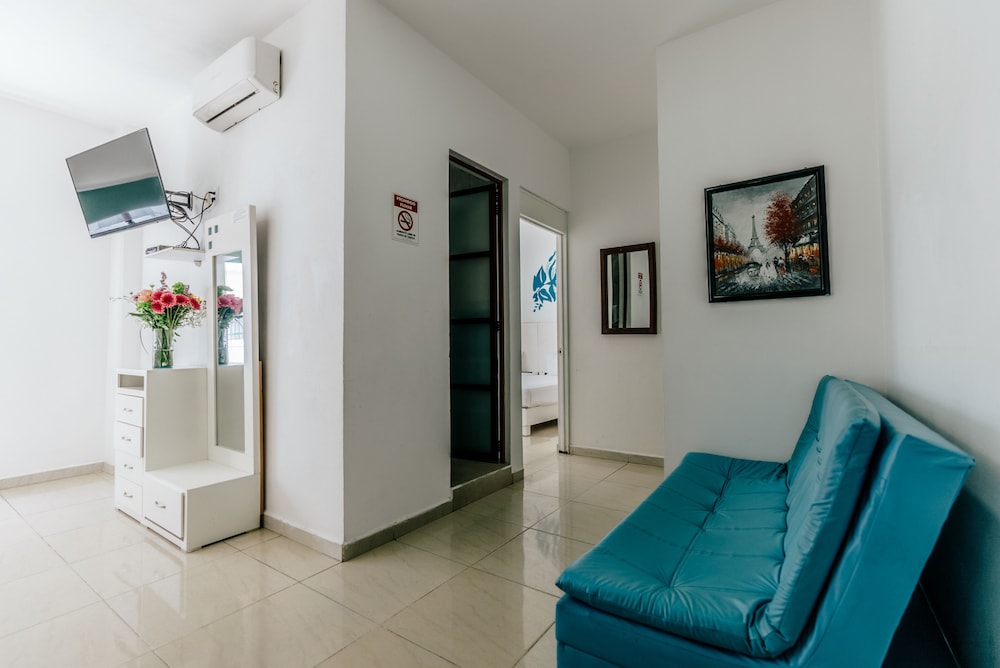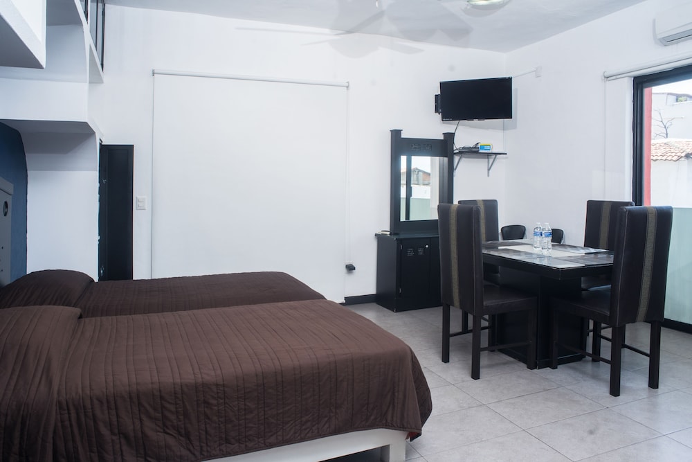el hotel esta muy centrico, a unos cuantos pasos del malecon y de la playa publica, en general todo muy bien para descansar, muchos lugares para comer ahi cerca y pasar de fiesta, no tiene alberca, y te piden un deposito por la estancia