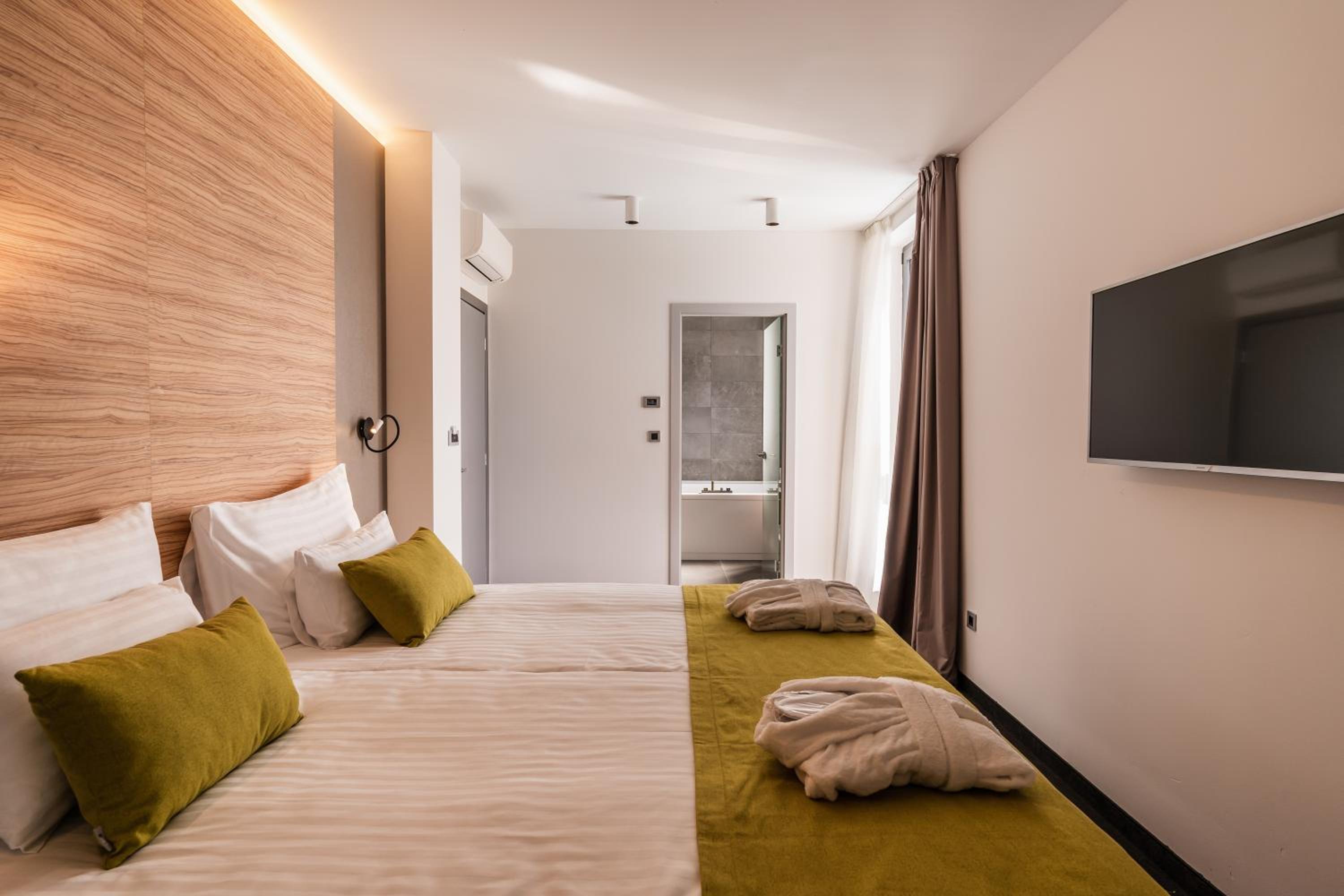 Hotel Olea offers a range of stylish rooms, suites, and villas with stunning views of the Adriatic Sea and Velebit Mountain. Rooms feature en-suite bathrooms, luxury toiletries, and balconies. Suites include a seating area and villas boast modern amenities, with a private pool and sun terrace for ultimate relaxation.
