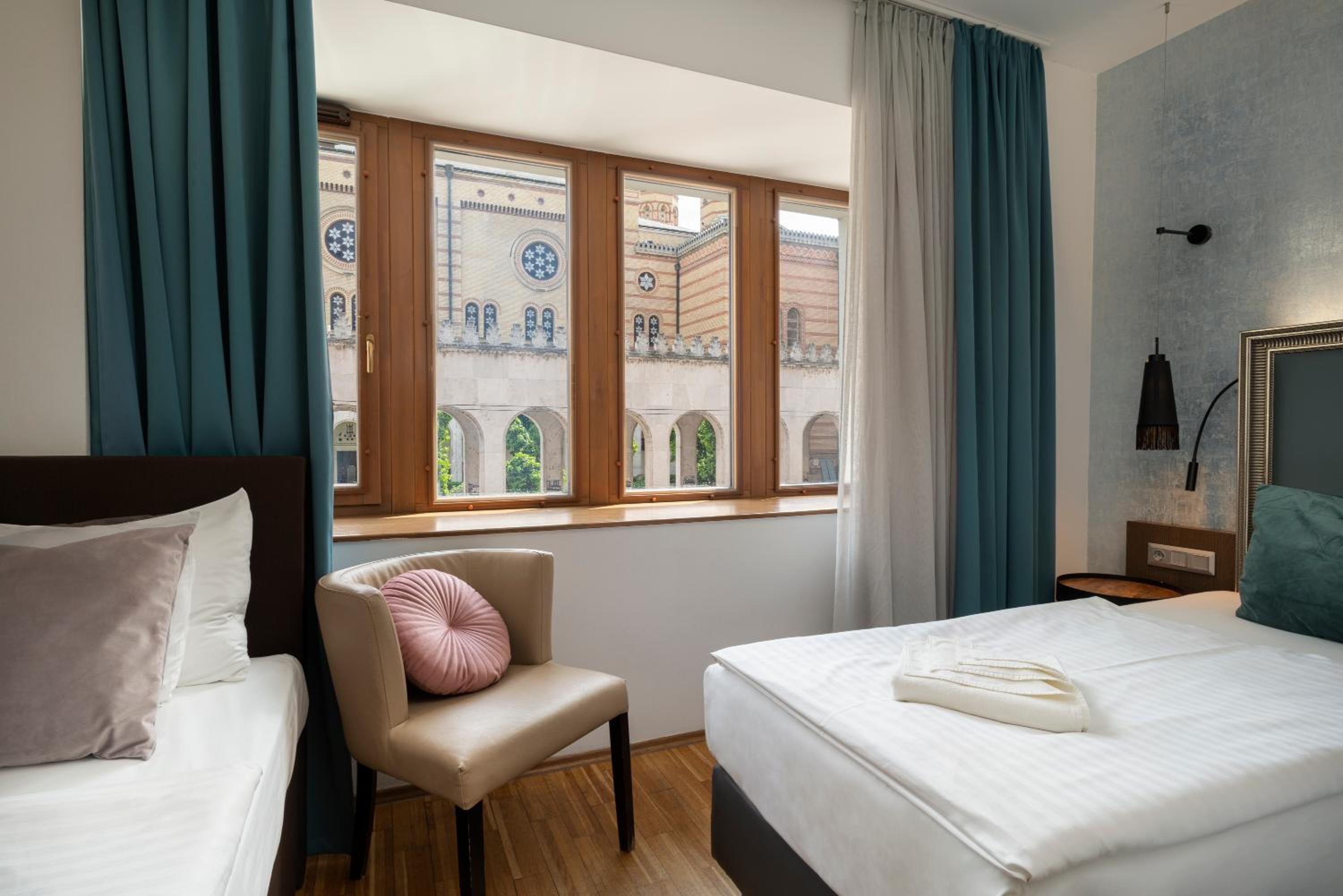 Hotel Memories Budapest, a charming hotel dating back to 1900, offers a prime location just steps away from Dohány Street Synagogue and Deak Ferenc Square.