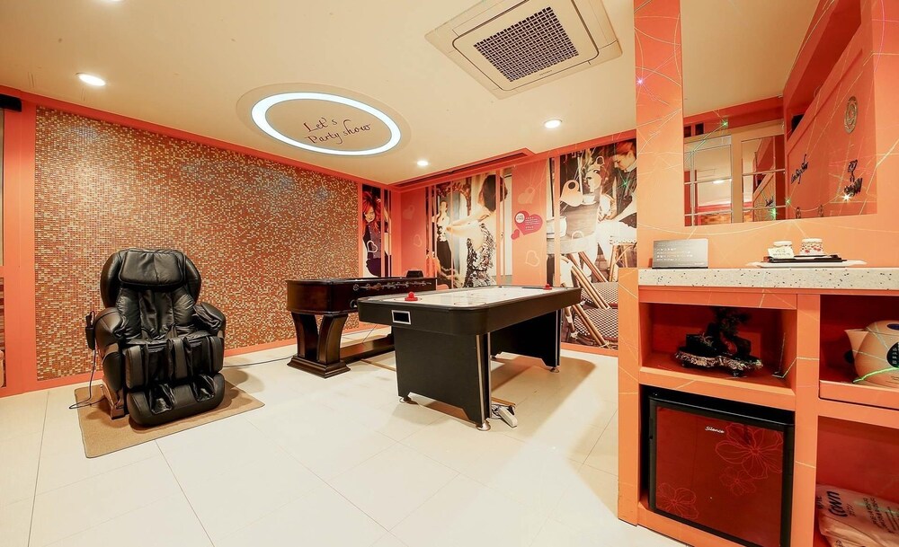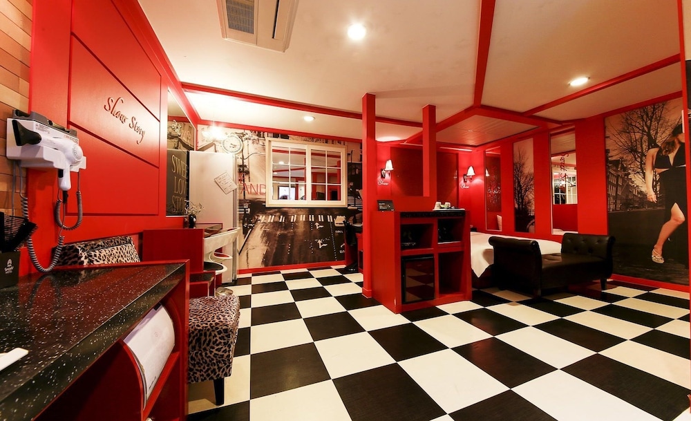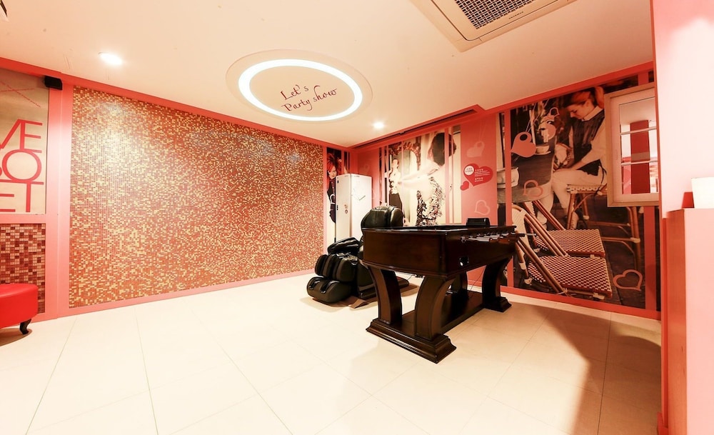 Hotel is located in "club" area, so I hope you understand what does it mean. As is written in the room "Sweet love story".