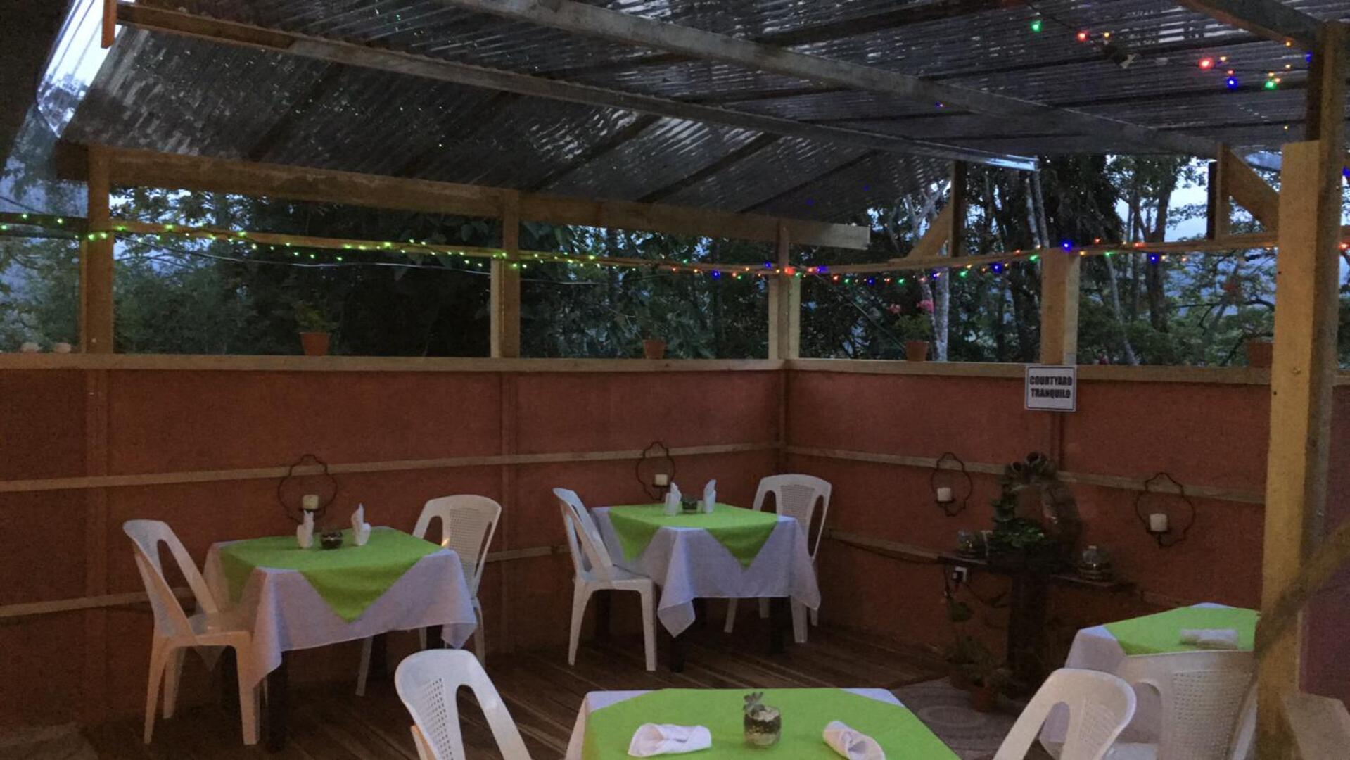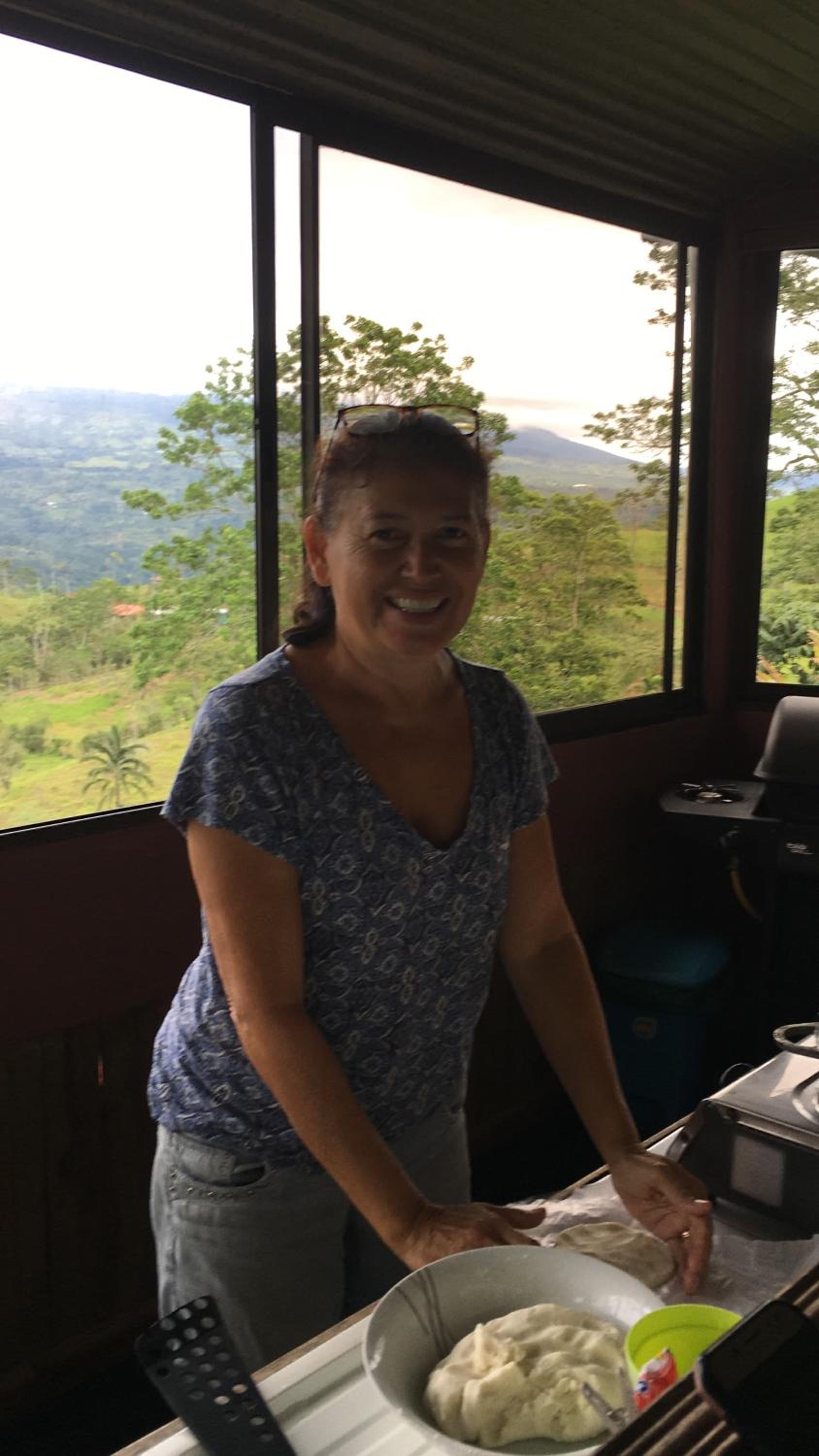 When we arrived, we stopped at the bottom of the hill. The driveway is steep, and we wanted to make sure the car could get up the hill before we attempted it ourselves. My wife walked to the top where she found the host Auxi. Auxi was very helpful and had the neighbor drive the car up the hill for us. Auxi showed us the restaurant and our cabin and later she made dinner for us and the other guests at the restaurant. We enjoyed having dinner at the restaurant and meeting the other guests, who we enjoyed talking with them and with Auxi. The grounds are nice and well-kept with plants and flowers, and great views all around. We enjoyed the sunset looking across the valley and across the valley is Turrialba volcano. We stayed in late August, mid-week and off season. There was only us and the other couple staying there. It was cool at night and quiet except for some trucks breaking during the night. The next morning, the weather was great, cool and comfortable. We enjoyed breakfast, talking with Auxi and the other guests at the bar with the view and the kitchen is behind the bar and breakfast is prepared in front of you. We sat at the bar in the restaurant with the great view and the same guests we met the night before. We were only there for one night. We wished that we had more time to explore and see the area.
