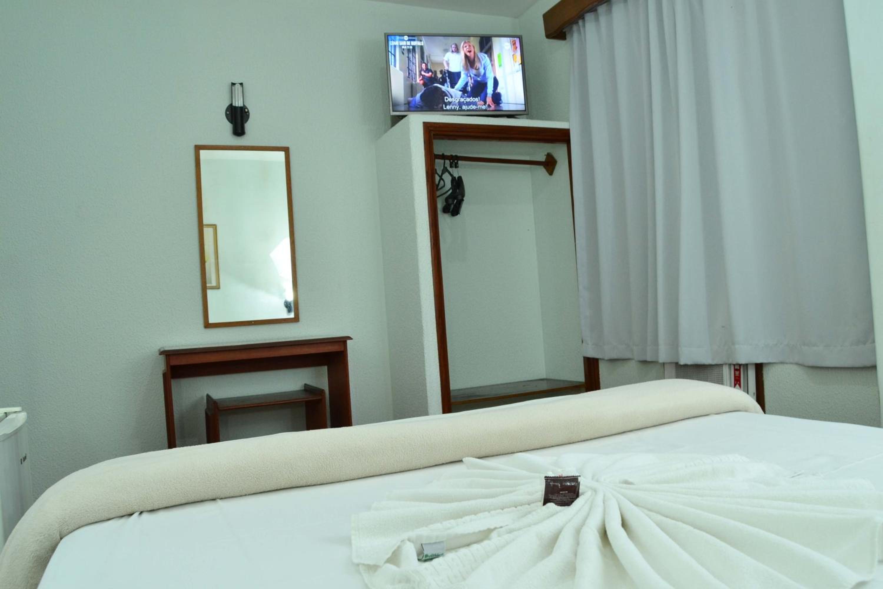 Hotel super caro, paguei mais de 270 reais a diária por pessoa, e o quarto e banheiro muito ruim e com aparencia suja. Tudo muito velho e desgastado, com cara de que foi reformado pela ultima vez em 1980. Não tem nem tomada na cabiceira.