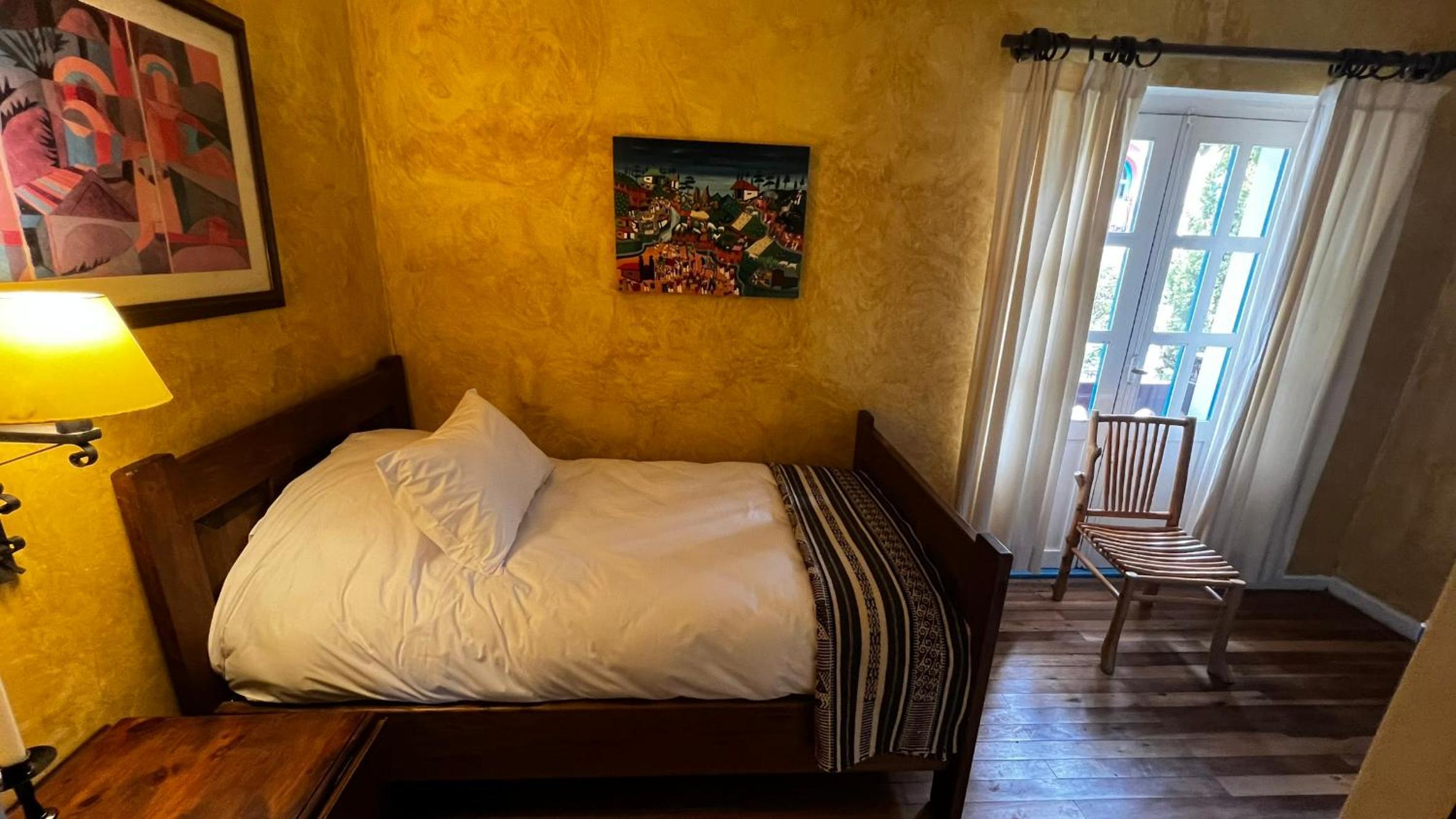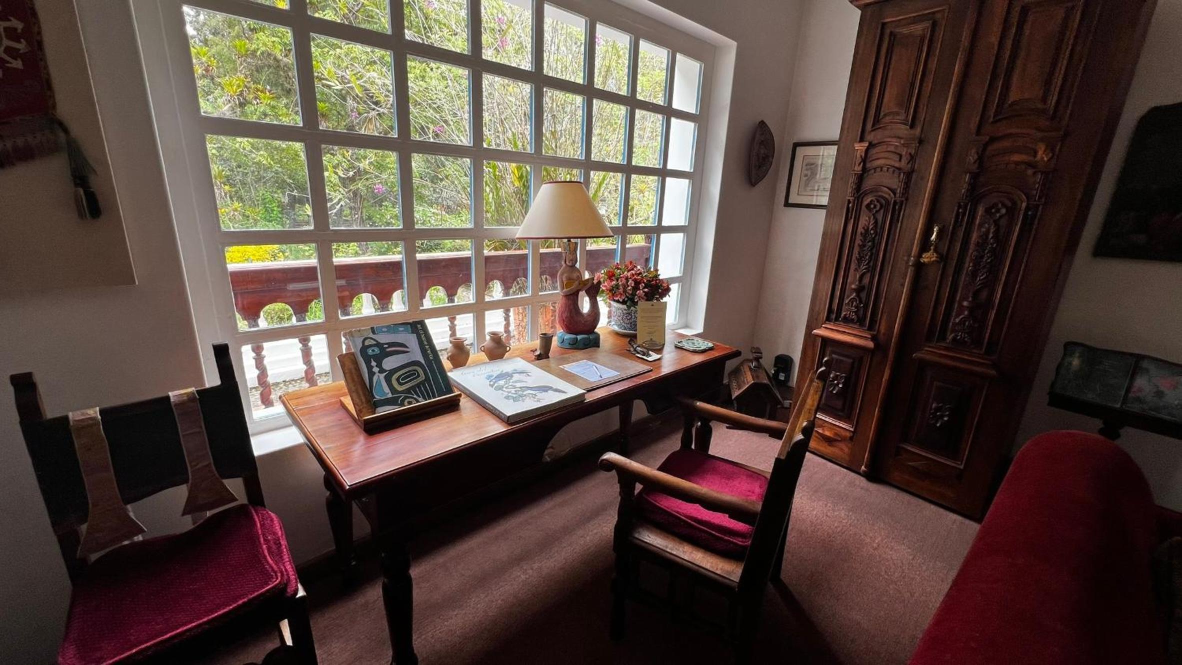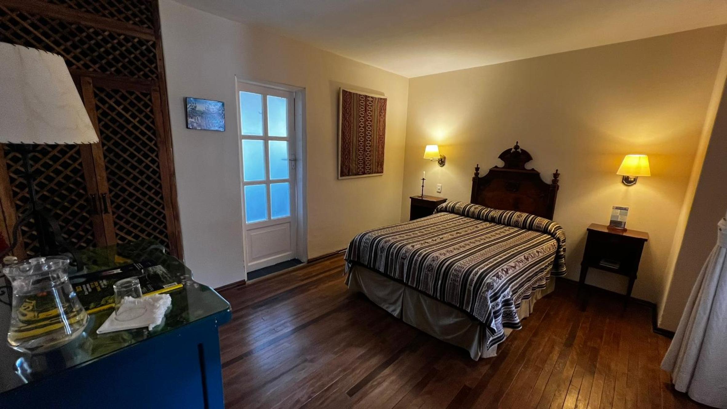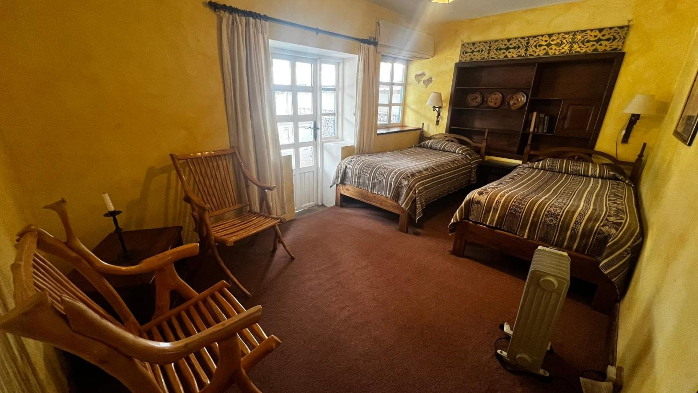 Cozy Andean-Themed Rooms: Each room at Cusin is adorned with beamed ceilings, Andean-themed decor, heating, and private balconies offering garden views. The antique wooden desks and handwoven bedspreads add a touch of authenticity and warmth.