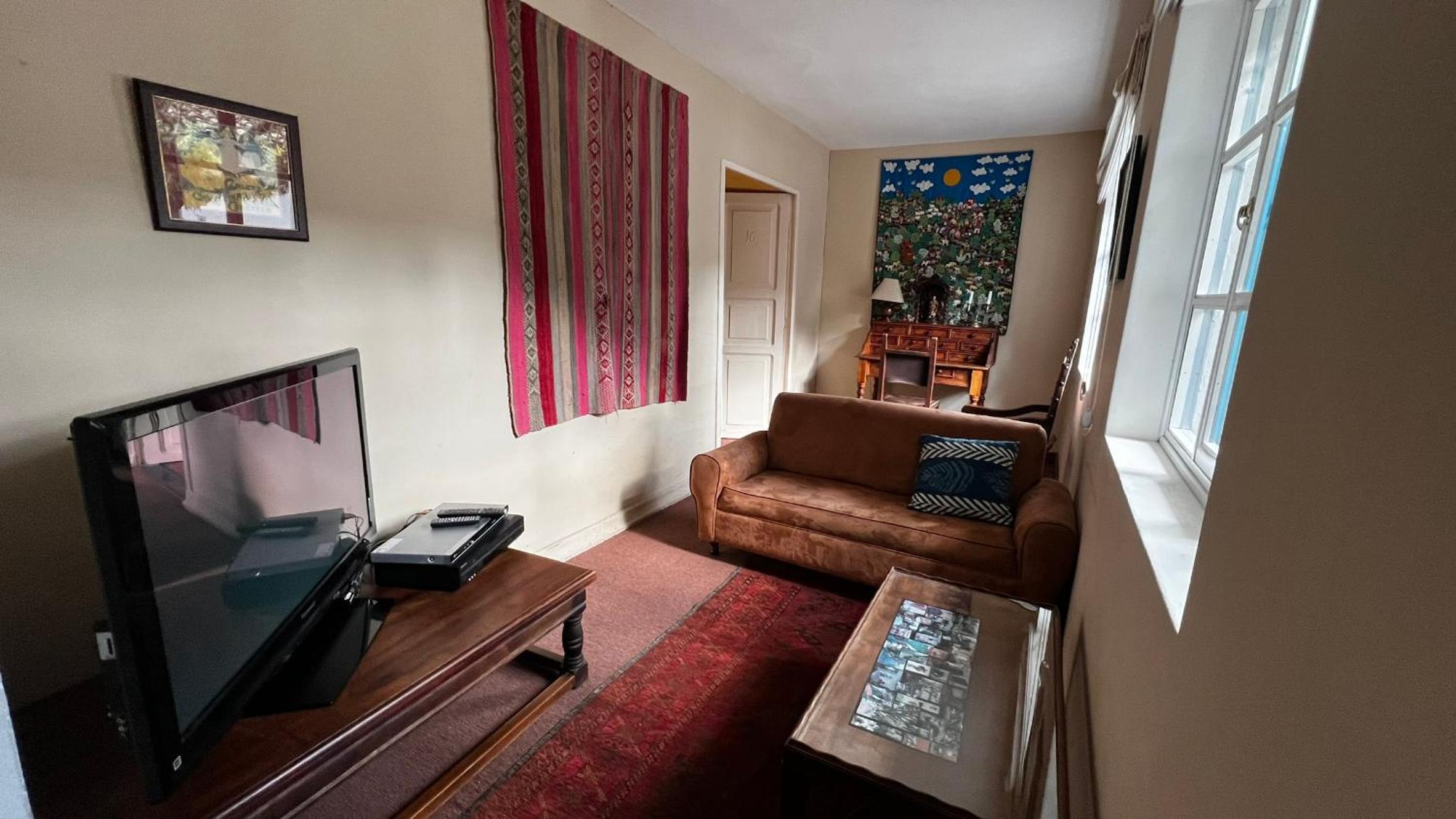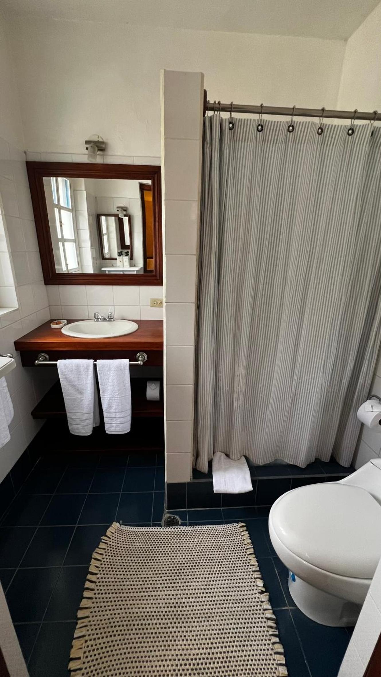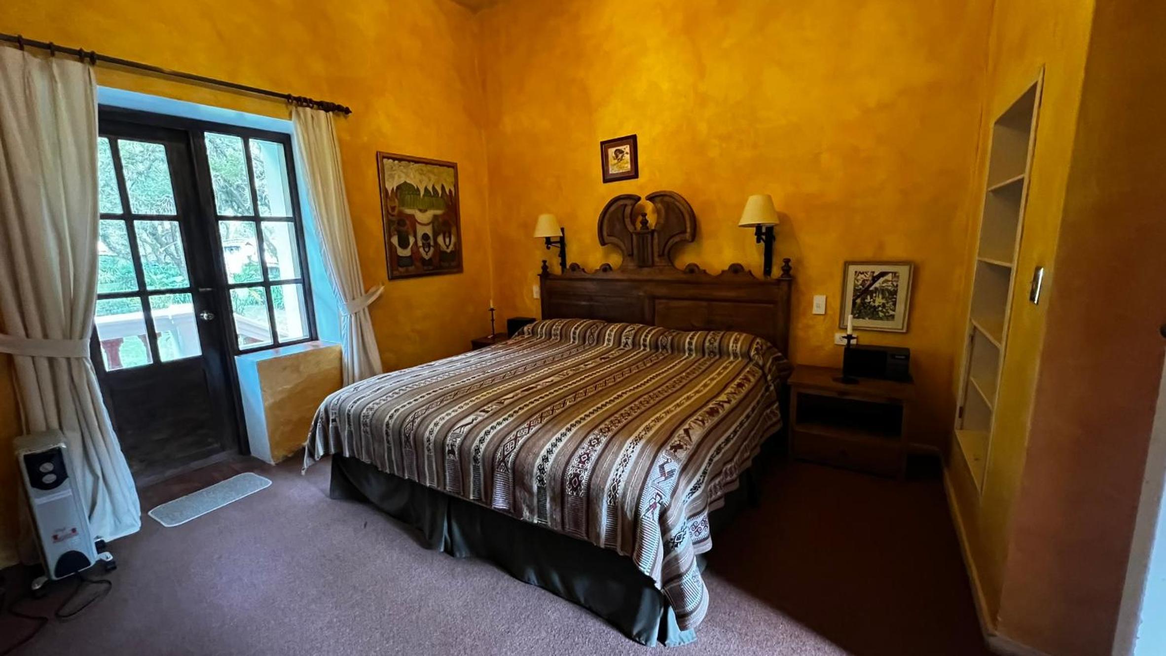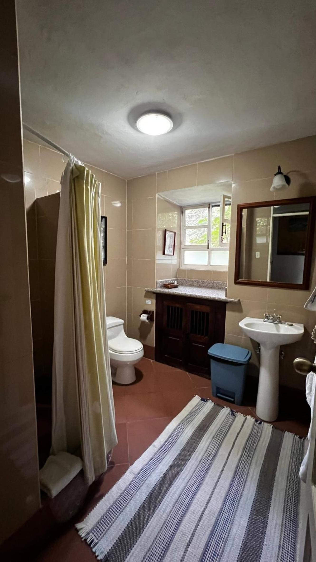 La primera noche dormí en una habitación superior. Estaba congelada,chimenea puesta,tenía que entrar constantemente leña ,ni así se calentó. El baño da pena,no había agua caliente,solo salía un chorro de agua pobre ,ni pensar en ducharse,cambié a la presidencial y ahí estaba mejor. Pero las instalaciones de baño más que con necesidad de renovación.