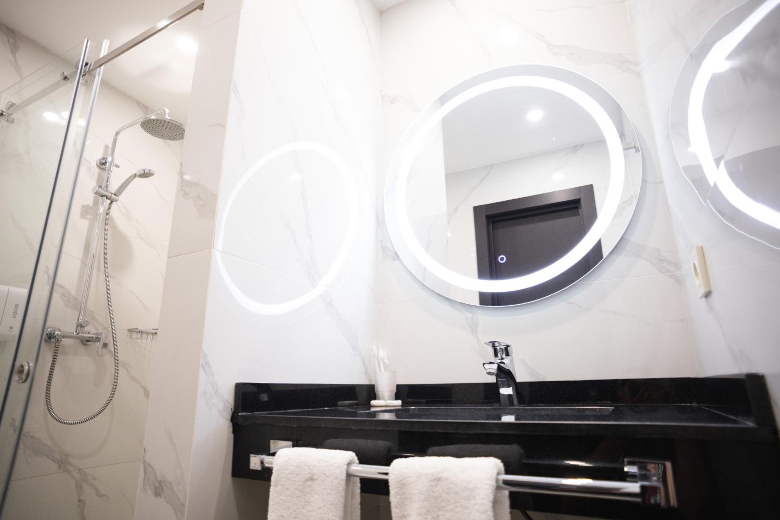 Интерьер достаточно современный, постель, ванна и весь номер в целом чистые. Большинство номеров смотря во двор, благодаря чему очень тихо.