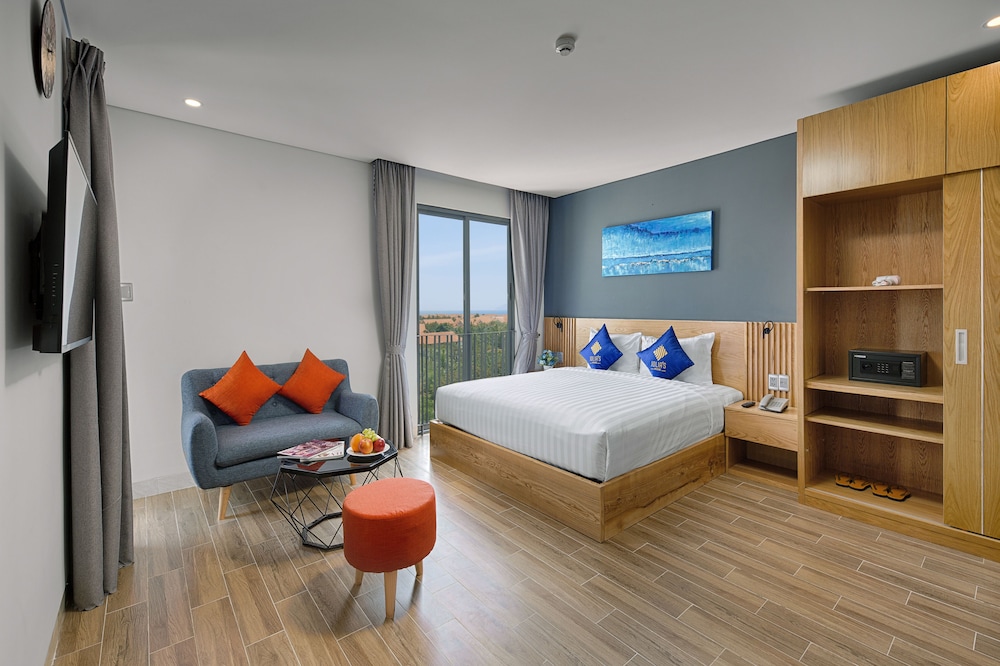 The hotel is located near the beach. The price is reasonable compared to other hotels nearby. It is easy to find restaurants around and supermarkets. The room is clean and there is also a swimming pool.