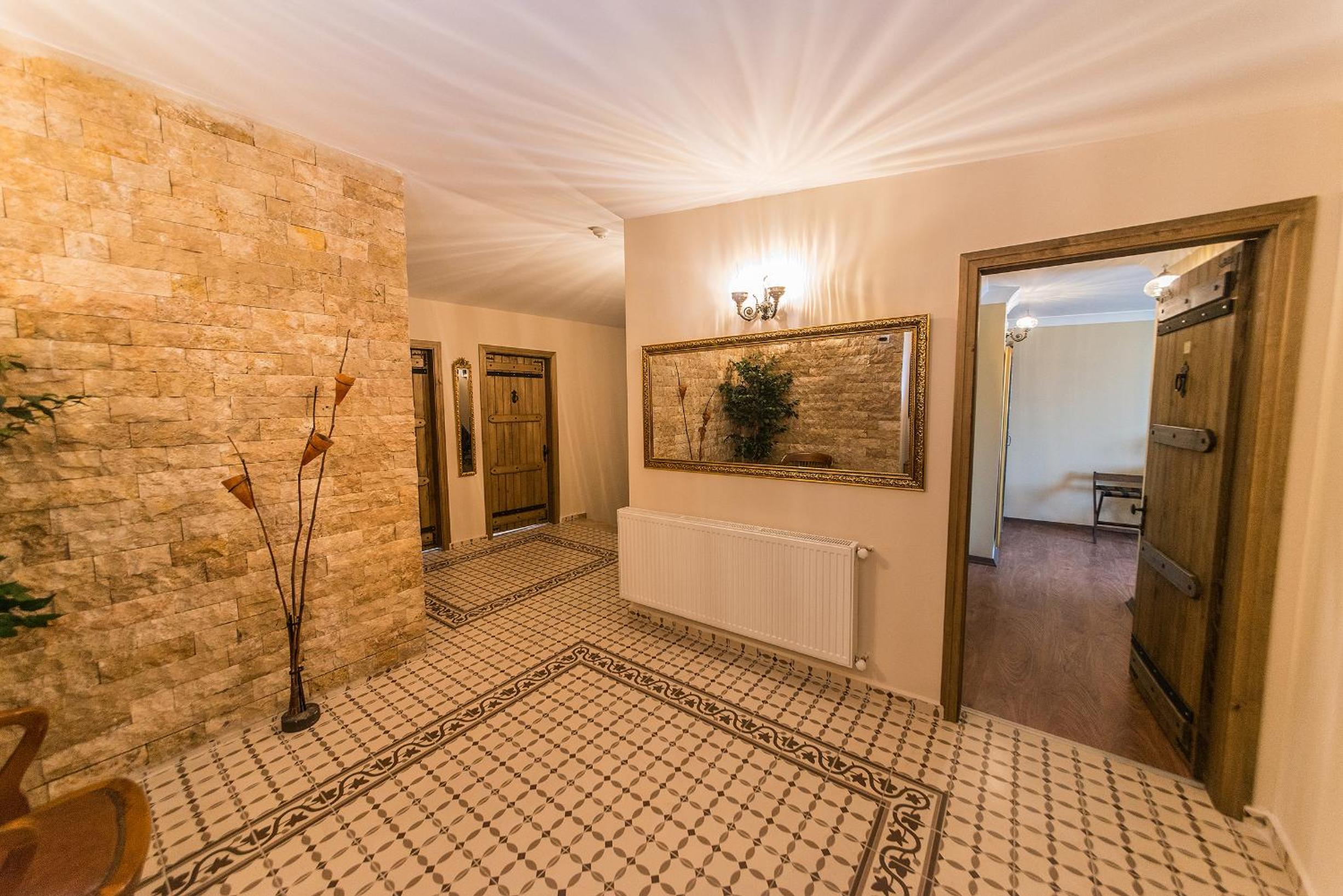 Резервацията ни беше за стая делукс за 2 възрастни, 1 дете и бебе. Настаниха ни в стая за 2 възрастни и бебе ( кошара). На запитването ни къде е леглото за 8 годишното дете отговориха с мънкане и не се промени нищо. В коридорите осветлението светва едва като стигнеш с напипване стаята си. Стълбите са доста стръмни. Тоалетната чиния беше ужасна. Има препарати с които могат да премахнат петната.