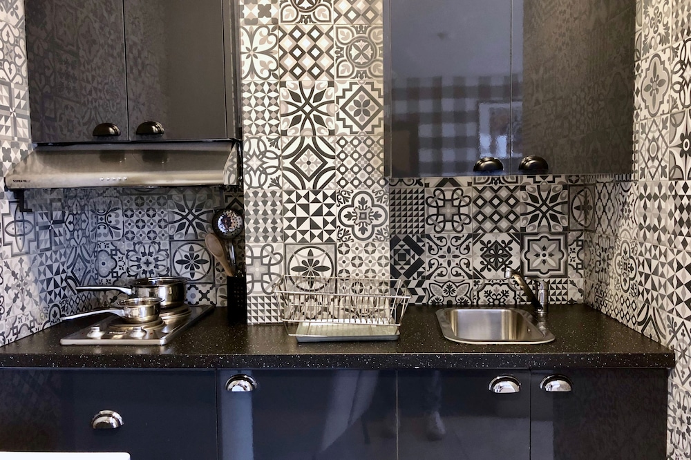The apartment ( studio for us) was nicely decorated and clean, kitchenette is cute, good size studio, bright... however, shower door doesn’t close properly and drain very slowly, so water was spilling out of shower to the toilet and even outside toilet area. The bed sheet are clean, but it was really rough.