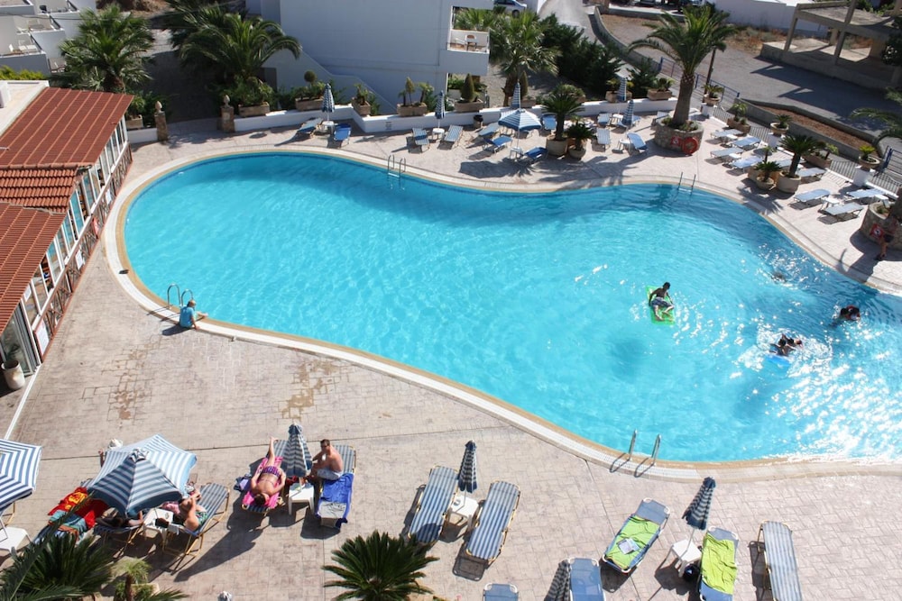 Hôtel bien placé entre lardos et lindos. L'hôtel possède une très agréable piscine. Grande chambre mais dommage la clim est payante. doté d'une baie vitrée et petit balcon, mobilier vintage.