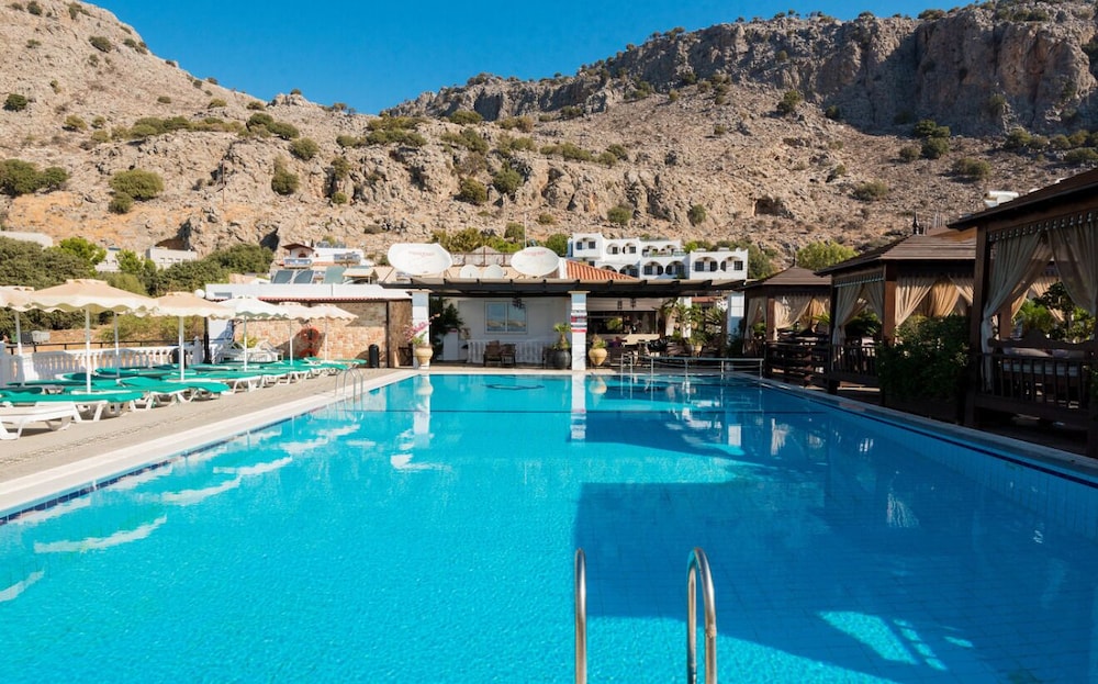 Pool, beach and restaurant area was beautiful. Good location, right next to bus stop or just a short walk into centre of Pefkos.