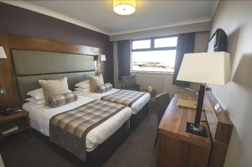 The welcome at reception was great. The hotel is spotless inside and out with unbelievable views over the bay. There was no lift to the rooms which was disappointing especially with heavy bags. The room itself was clean and tidy. There were no power points by the bed (needed for some medical equipment) so had to get an extension from the Tesco. The view from the room again was magnificent. This restaurant at the hotel is really good, the service is great and the food was excellent.