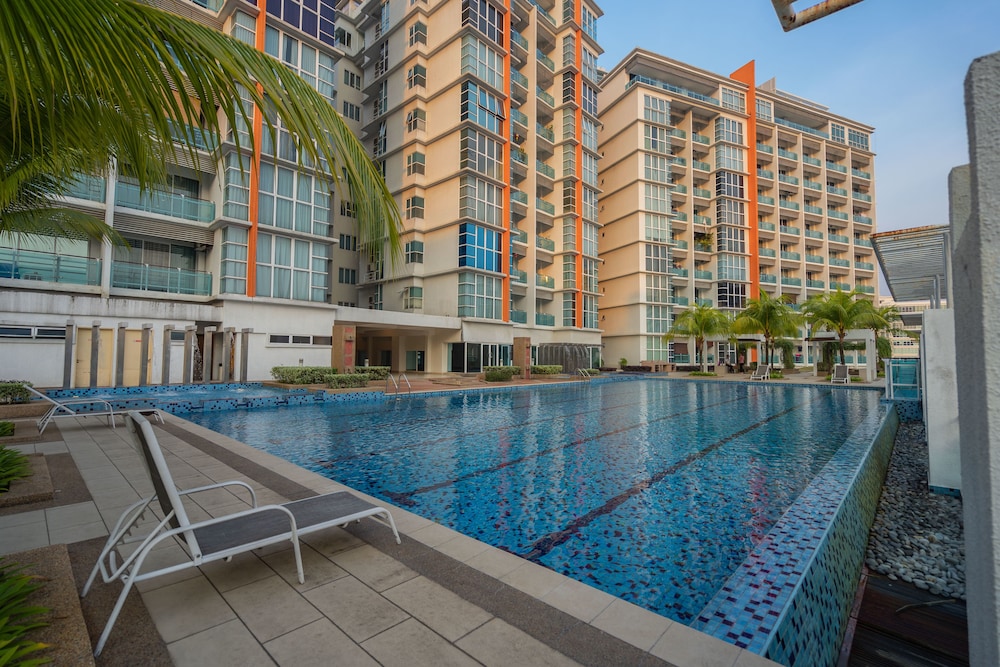 Enjoy the outdoor pool and fitness center at Oasis Square Serviced Apartment for a relaxing stay.