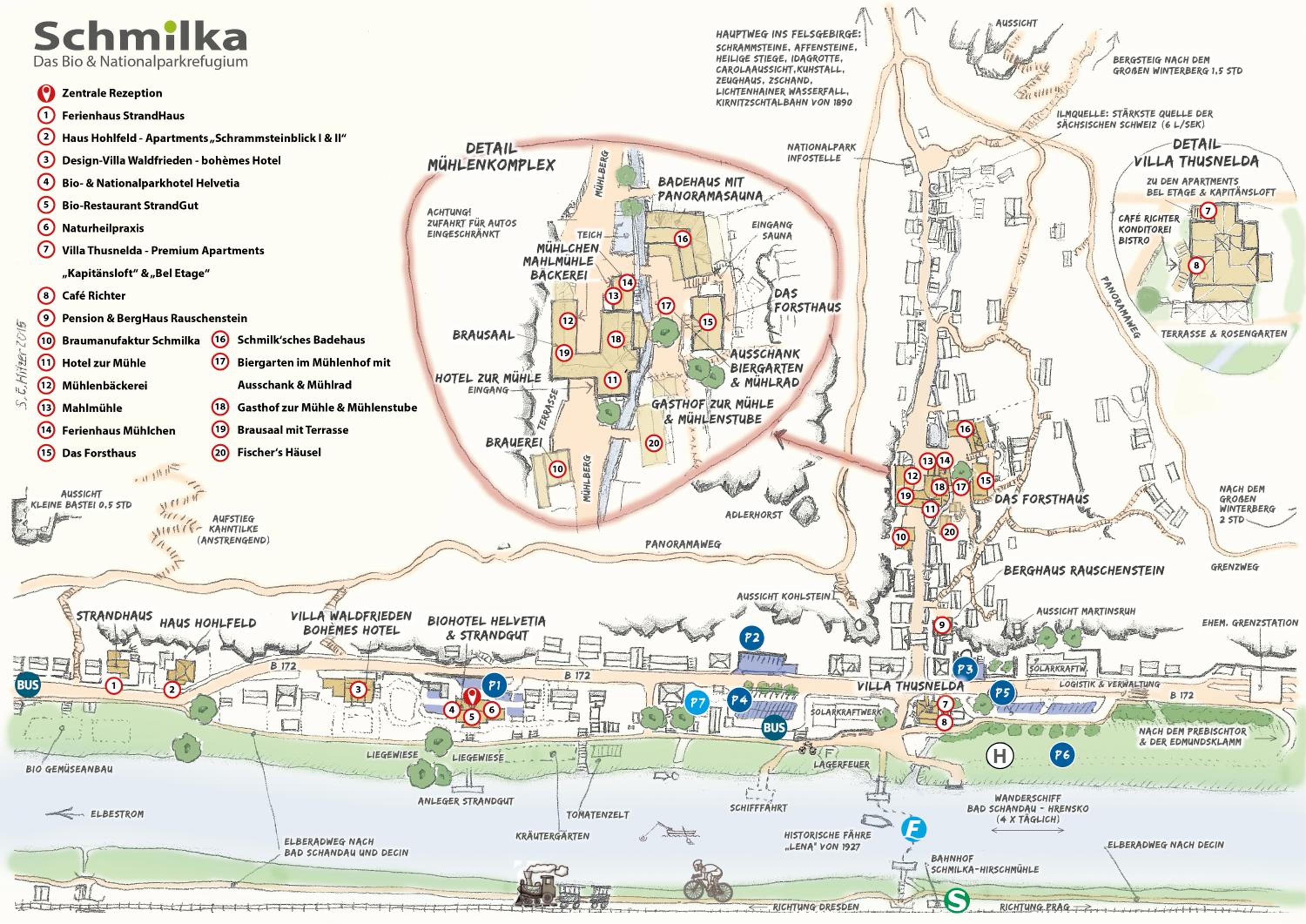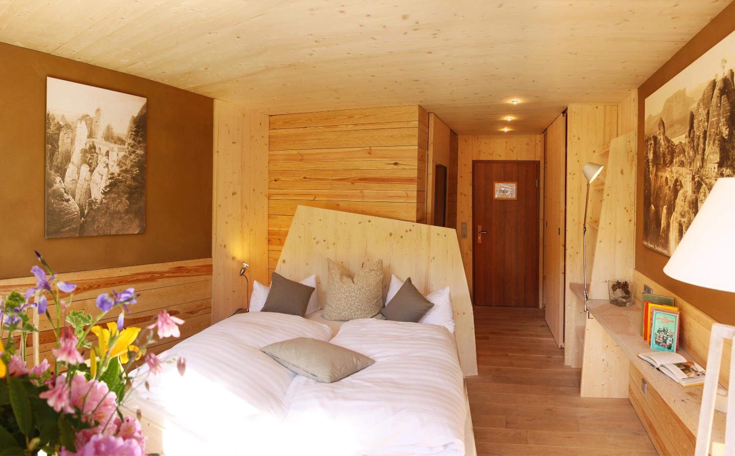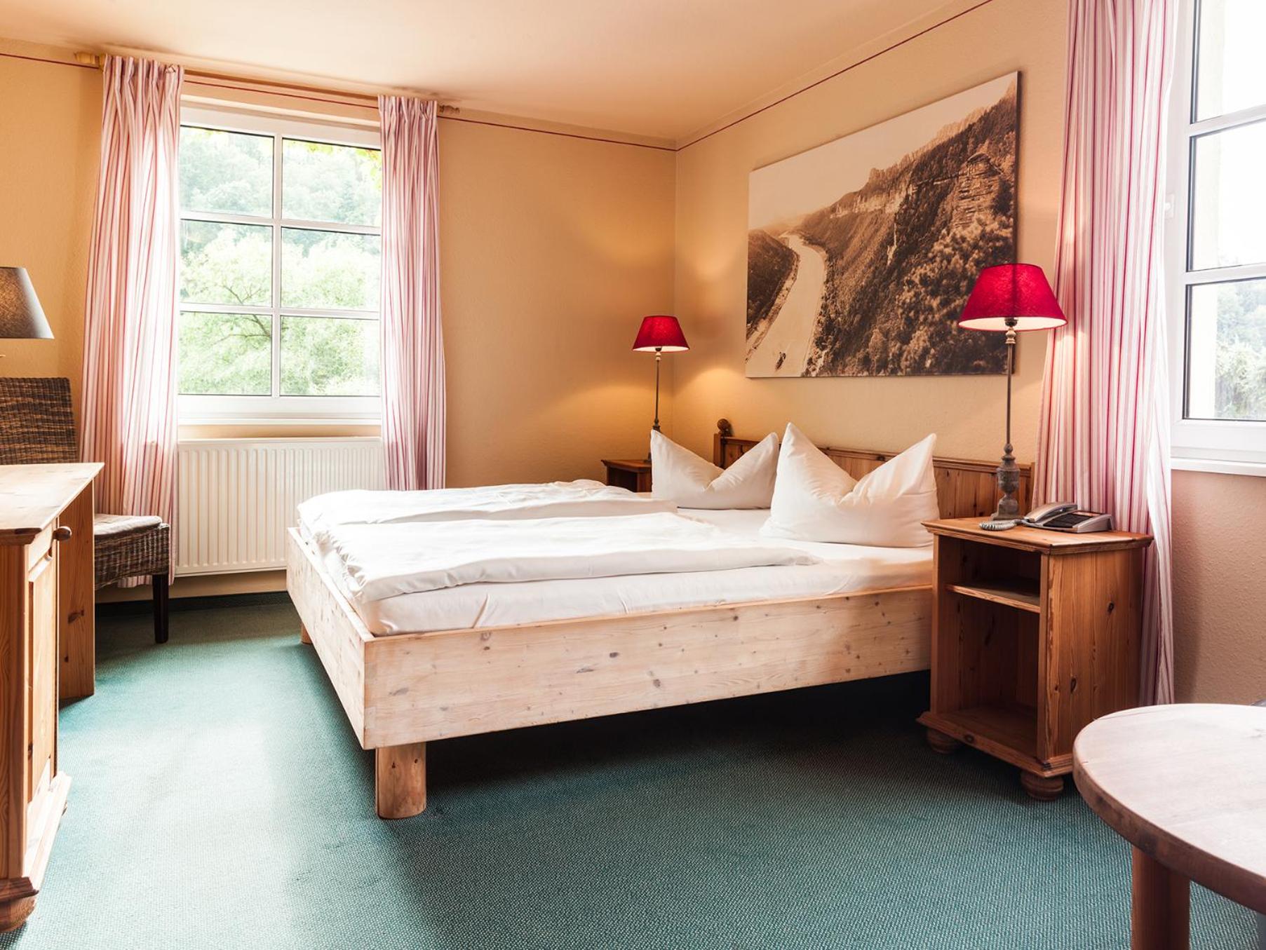 Bio-Hotel Helvetia is nestled in the picturesque village of Schmilka, situated directly on the Elbe cycling trail and the Malerweg long-distance hiking trail. Guests can immerse themselves in nature and explore the stunning surroundings through various outdoor activities like cycling and hiking.