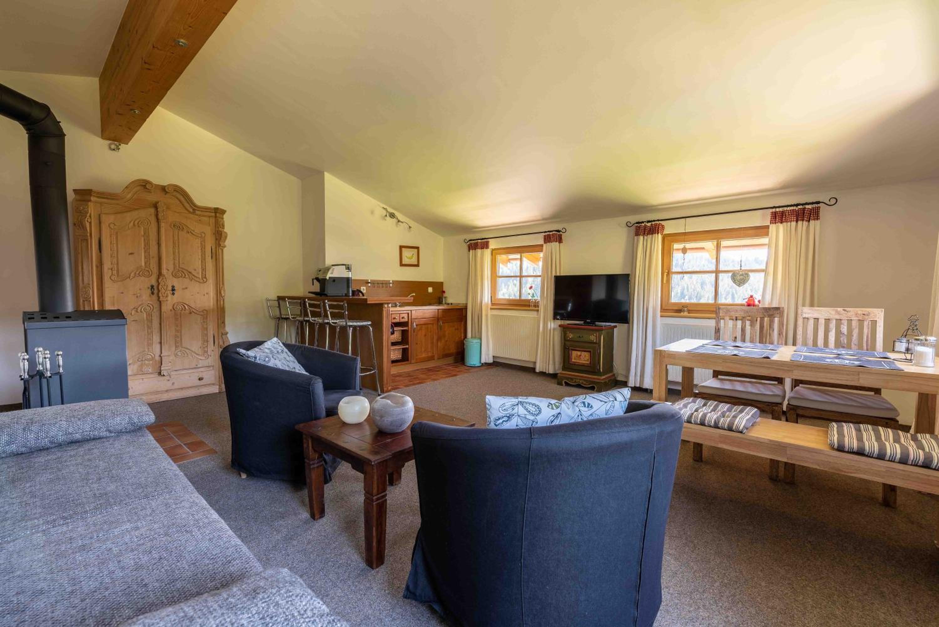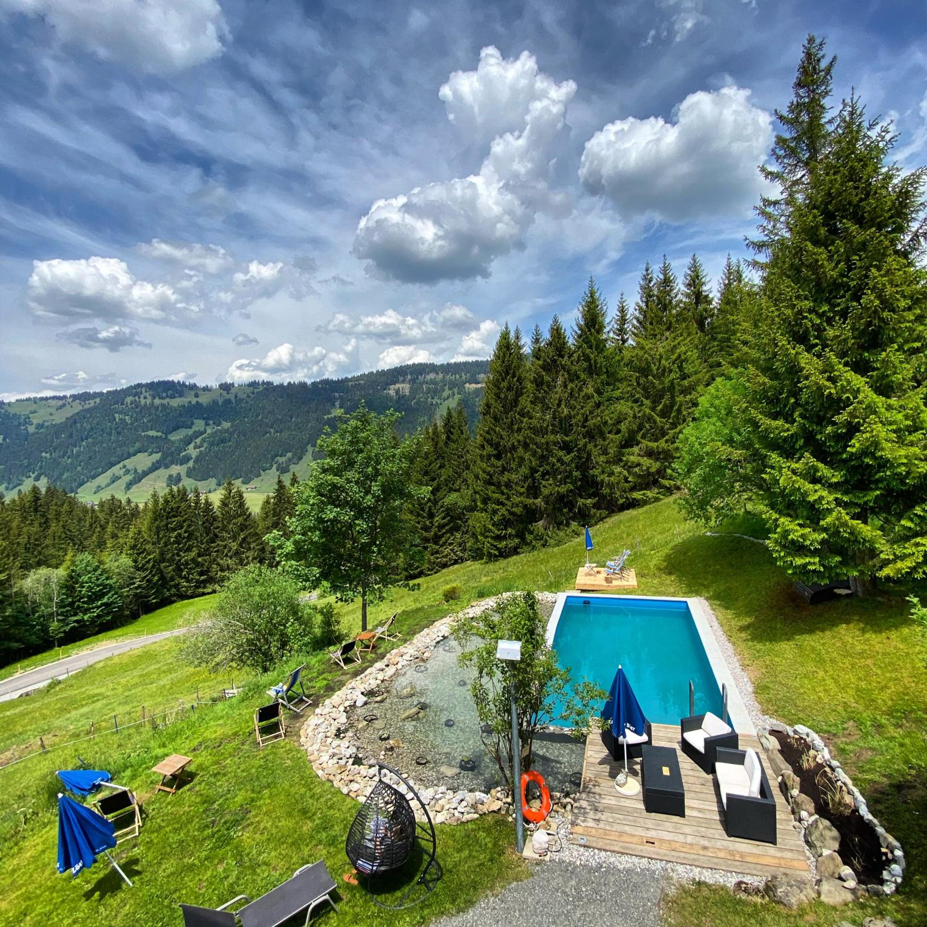 Indulge in regional delicacies at the on-site restaurant or unwind by the swimming lake. For outdoor enthusiasts, ski storage, nearby slopes, and hiking trails await exploration. After a day of activities, rejuvenate in the communal sauna for the ultimate relaxation.