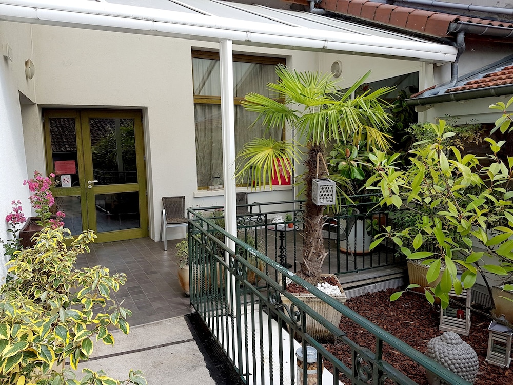Zimmer nach "hinten hinaus". Ordentliche Klimaanlage; Parkplatz vor dem Haus. Auch mit dem neuen Koch gute Küchenqualität im Restaurant St. Georges. Freundlicher Service, akzeptable Preise. Nach Condrieu mit seinen berühmten Viognier-Weinen ist es nicht weit.