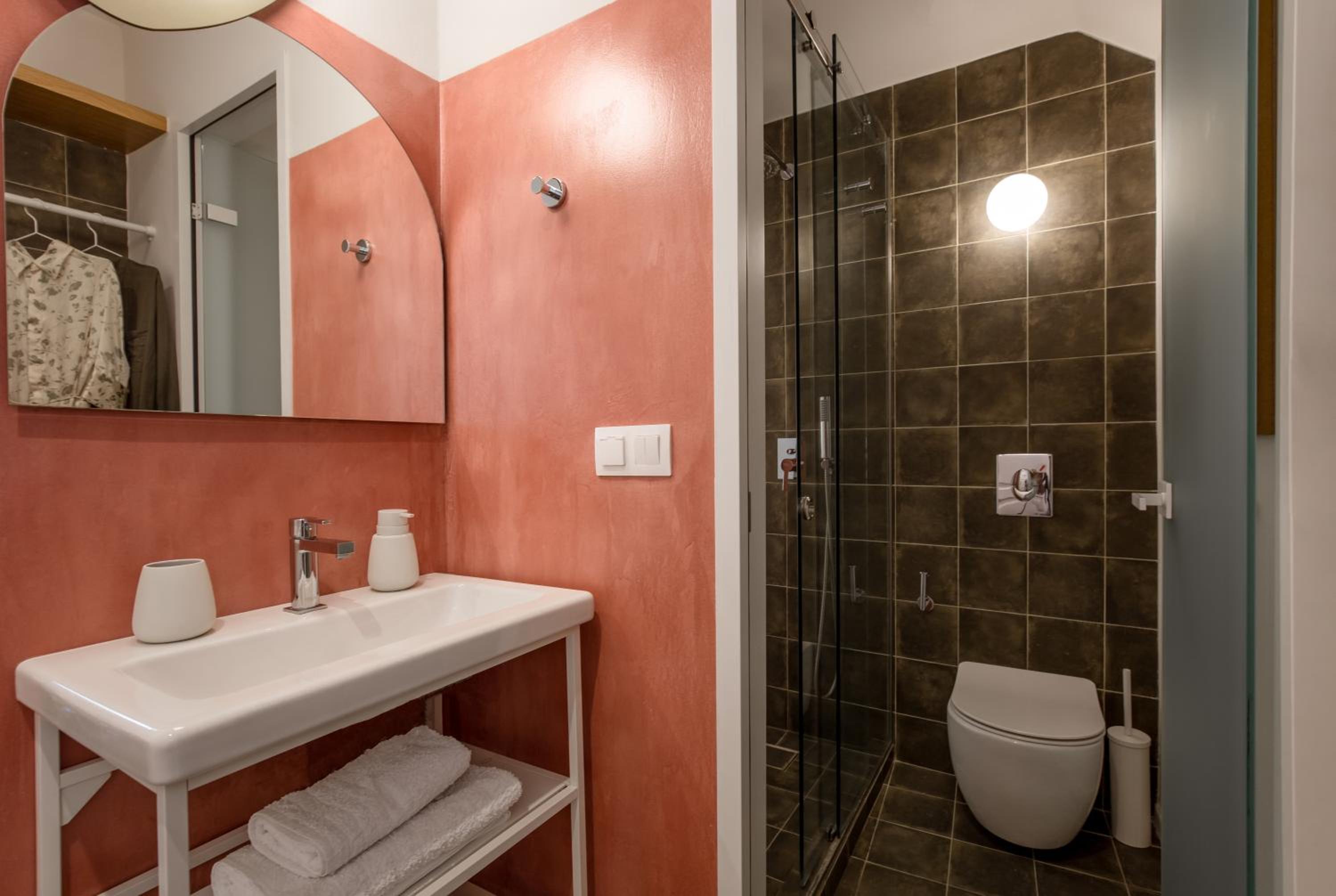 Keine Parkmöglichkeiten in der Nähe, Koffer müssen mindestens 300/400 Meter durch die belebte Fußgängerzone geschleppt werden. Wasser lief aus der Dusche raus, ließ sich nicht so gut verhindert.