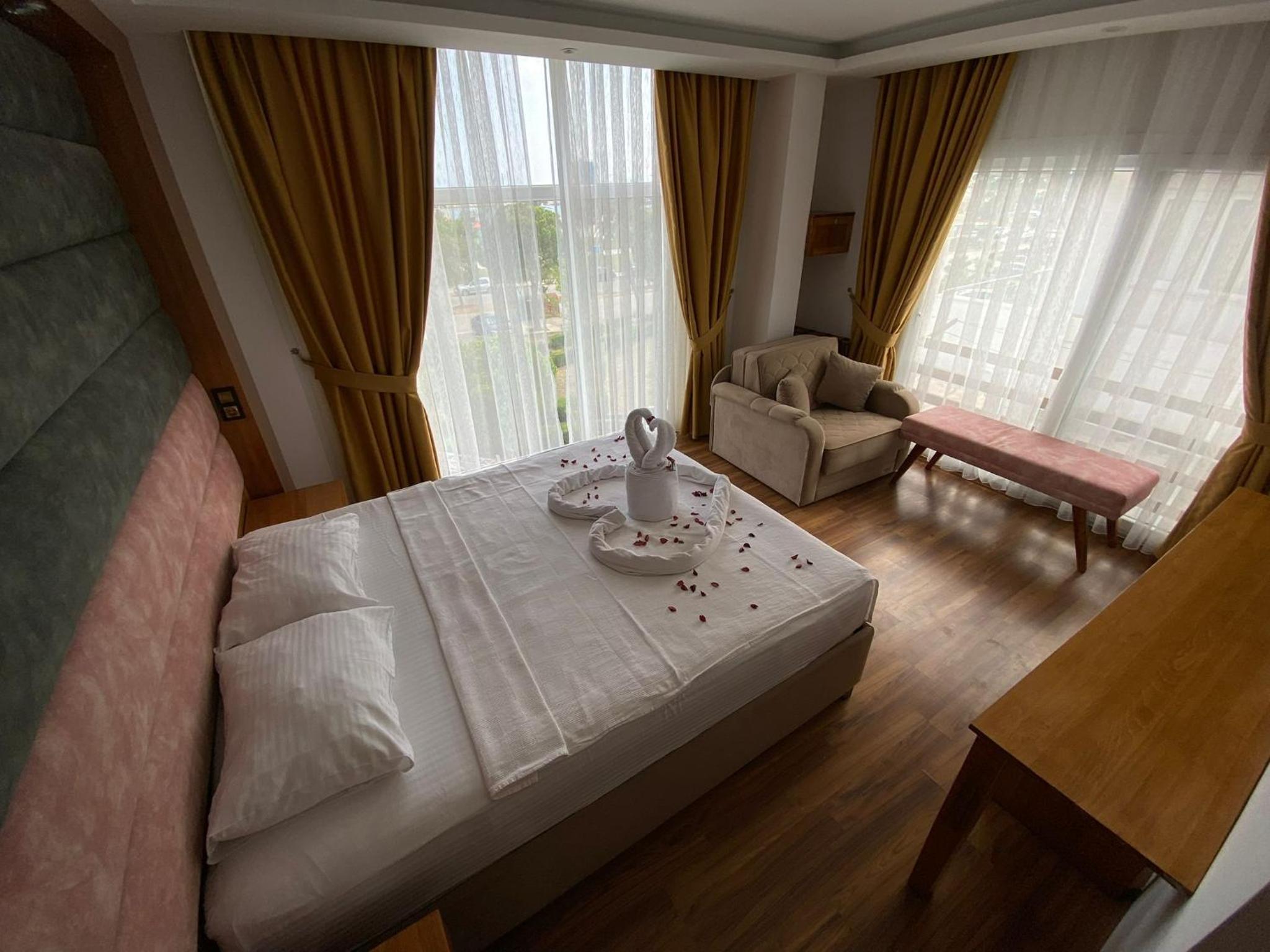 Enjoy stunning sea views from every room at ASKAR PORT OTEL. With air conditioning, flat-screen TVs, and private balconies, your comfort is our priority.