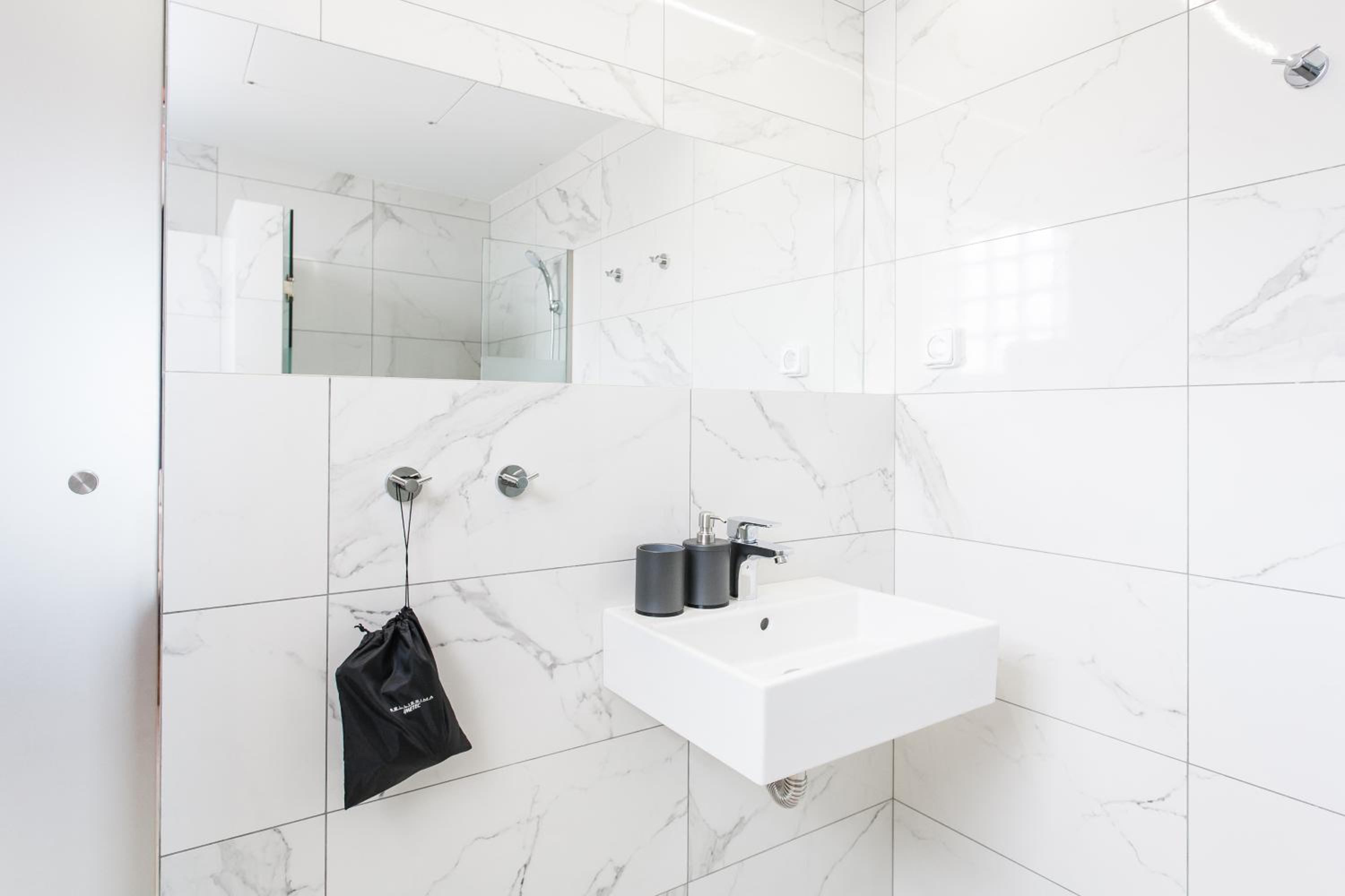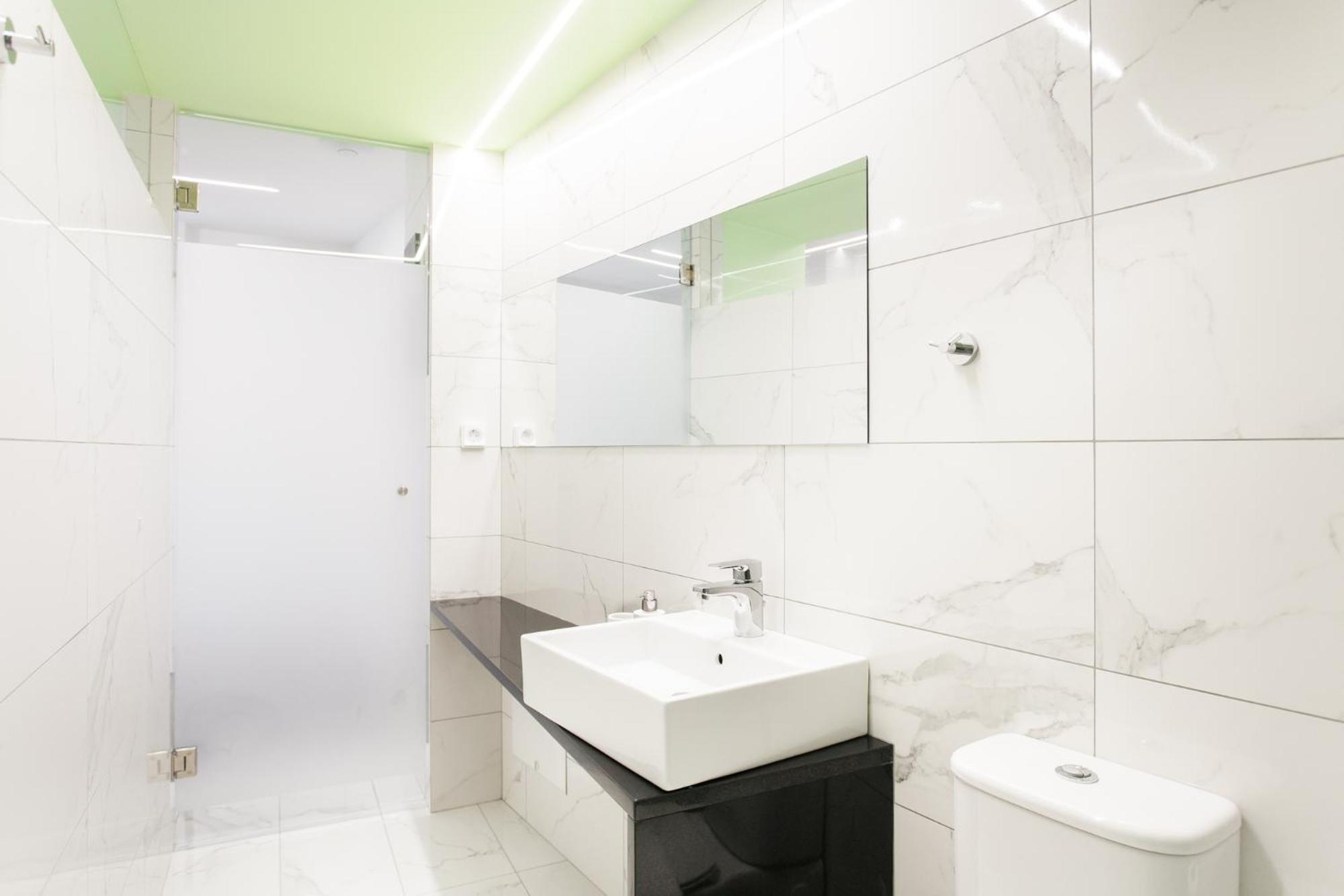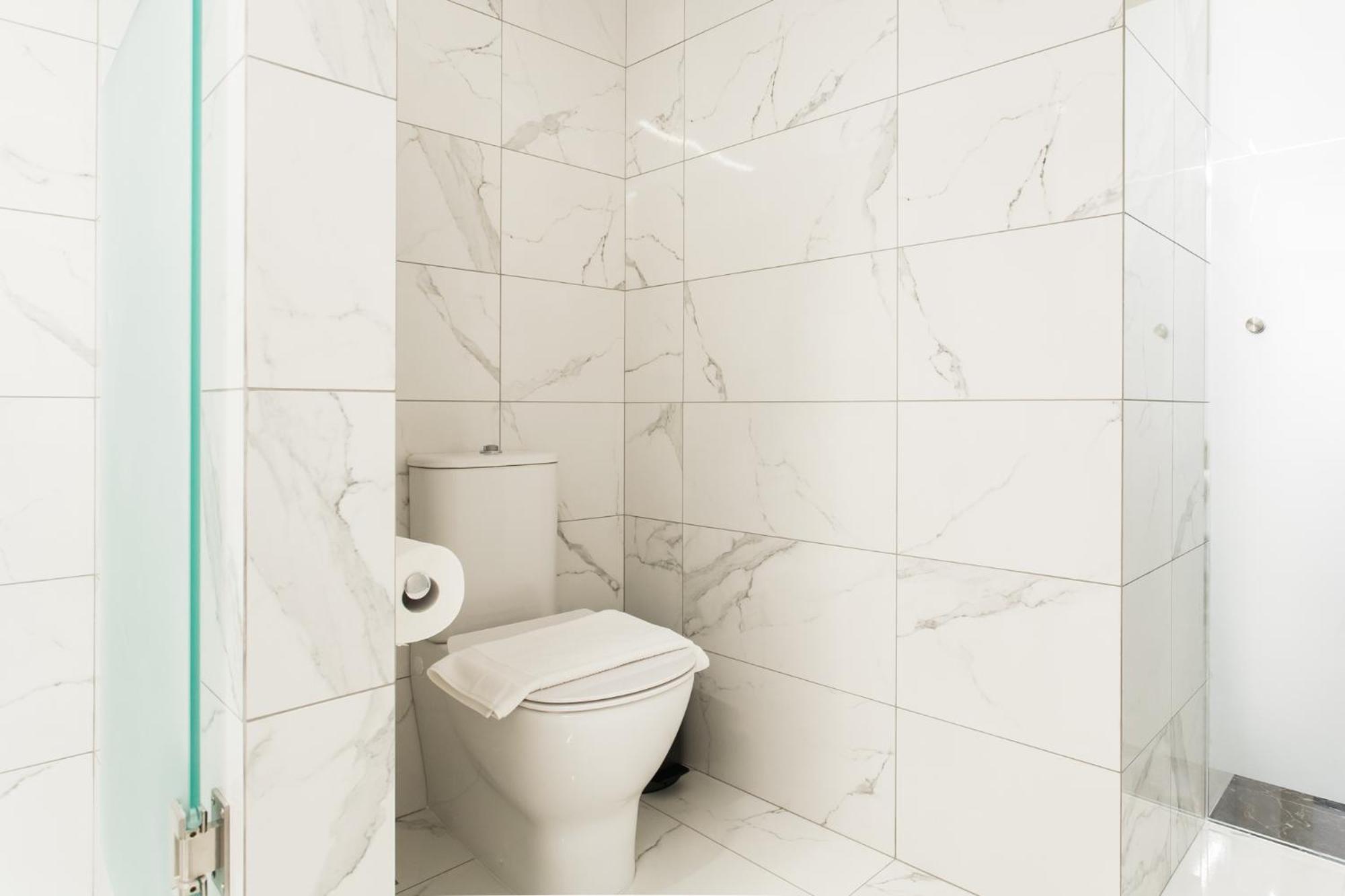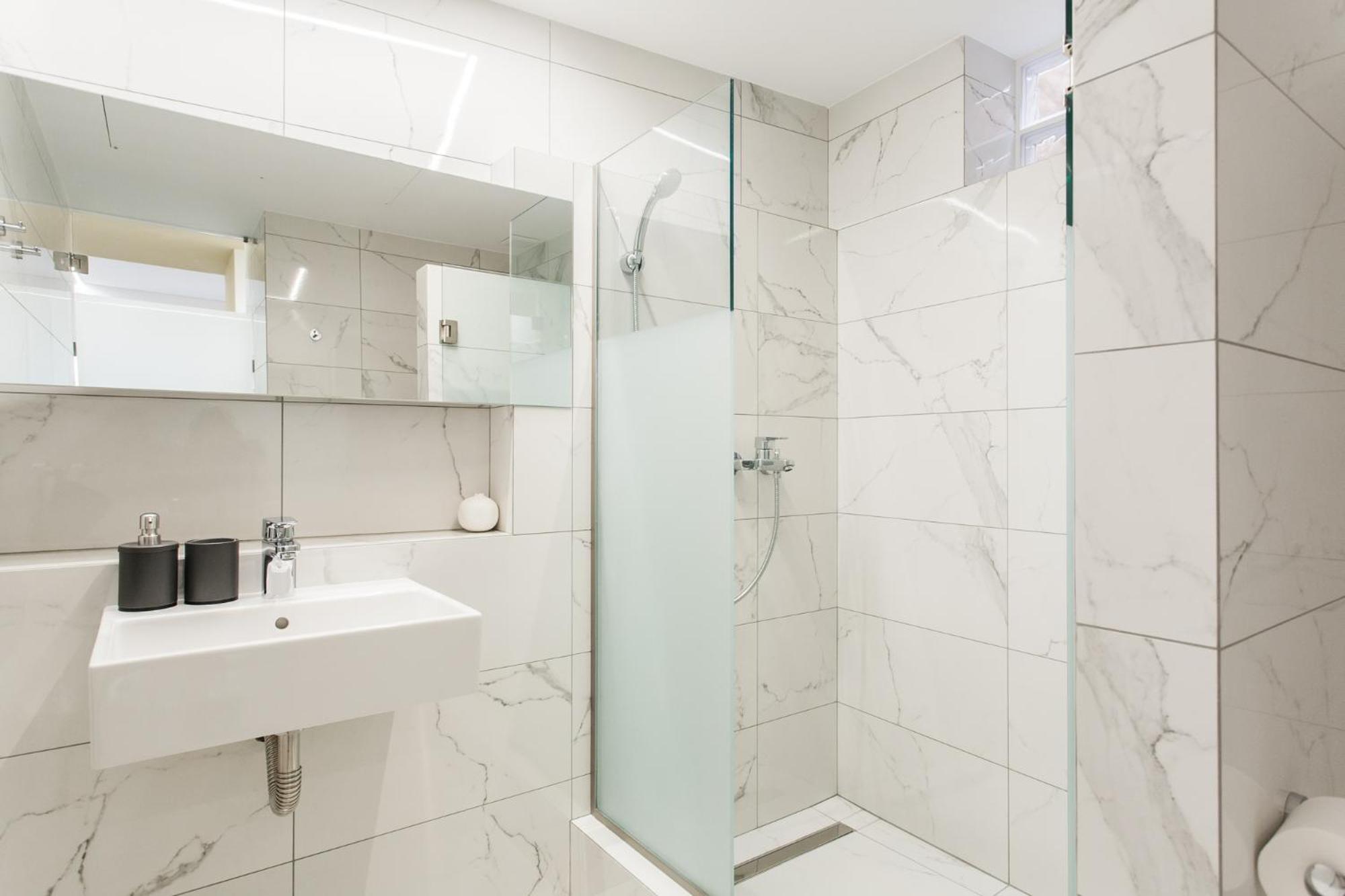 Modern apartment, strong efficient A/C, streaming TV services (Netflix) and spacious bathrooms. The TV appears small but has exceptional HD–movie was enjoyable. The bedroom's wardrobe were great to have, as well as an outlet adaptor, which I forgot to bring. The neighborhood was quiet and within walking distance to a few restaurants and grocery stores. They also provided a map of the area, including points of interest, which was thoughtful. The staff were very friendly; check-in and check-out was a breeze.