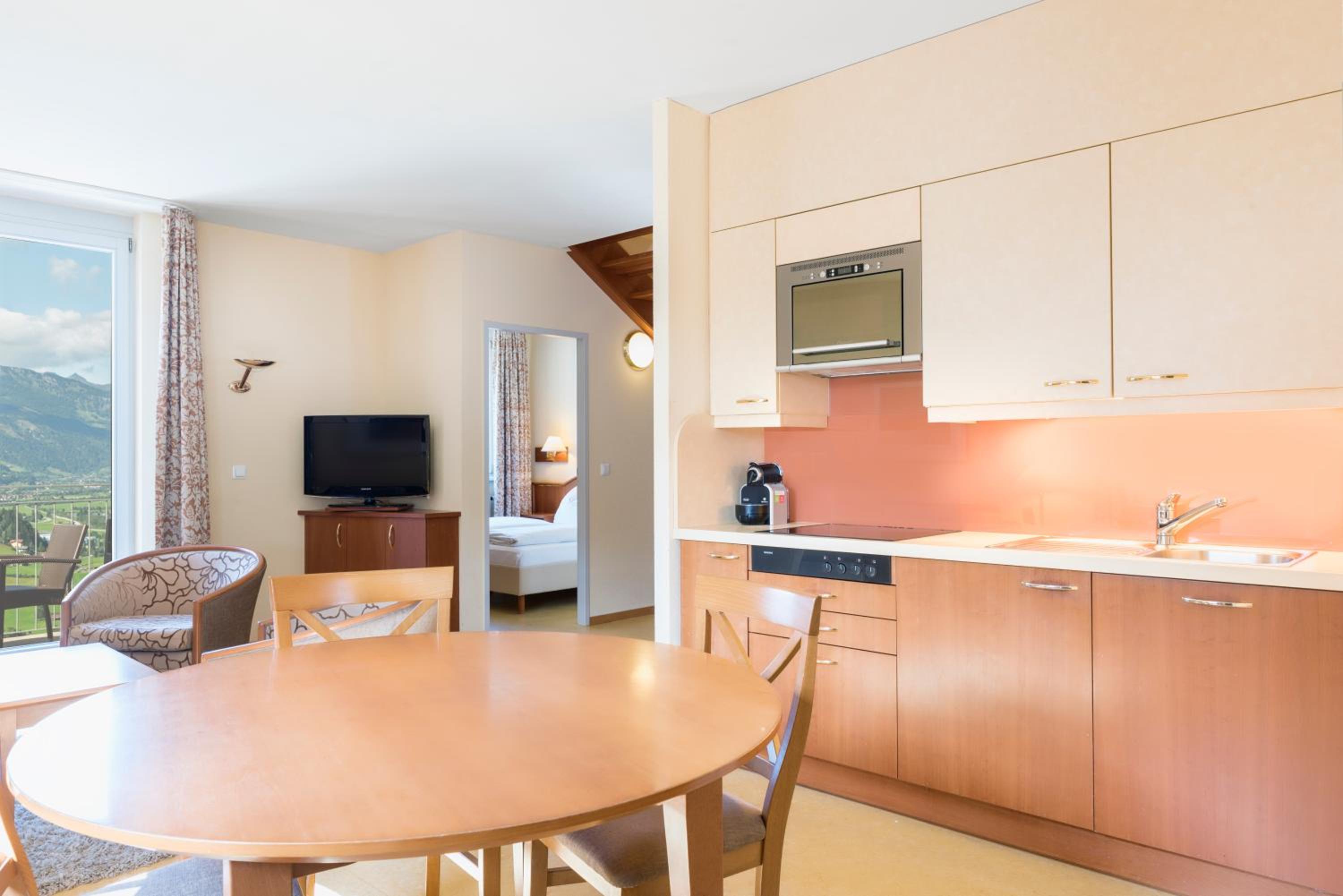 Die Appartments sind zweckmäßig ausgestattet. Der Wellnessbereich und das Schwimmbad sind sehr schön. Auch wenn die Saunas erst am Nachmittag eingeschaltet werden, wurde uns angeboten, sie schon in der Früh einzuschalten. Damit hatten wir einen ruhigen Wellnessbereich, während die meisten auf der Piste waren. Der kleine Shop ist gut ausgestattet und bietet auch unverpackte Ware, die man in beliebigen, auch sehr kleinen Mengen abfüllen kann (zB Essig, Öl, Majo, Müsli, Nudeln etc.). Das ist gerade für Kurzurlaube hilfreich!