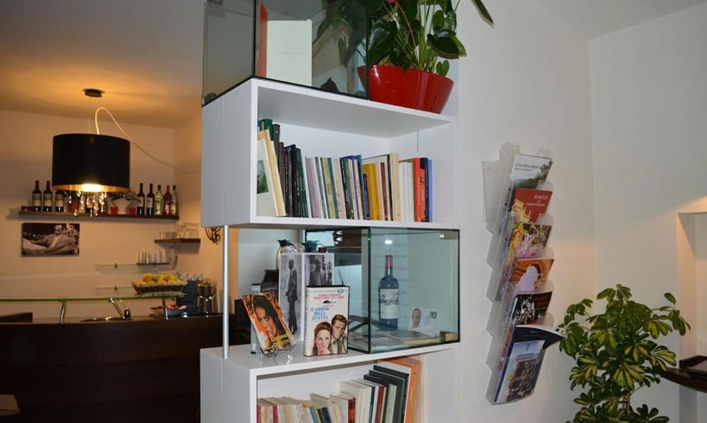 Alla reception una piccola biblioteca di testi sciasciani consente approfondimenti. Rarità : le annate della rivista pubblicata a Racalmuto "Malgrado tutto" nata in collaborazione con lo stesso Sciascia.