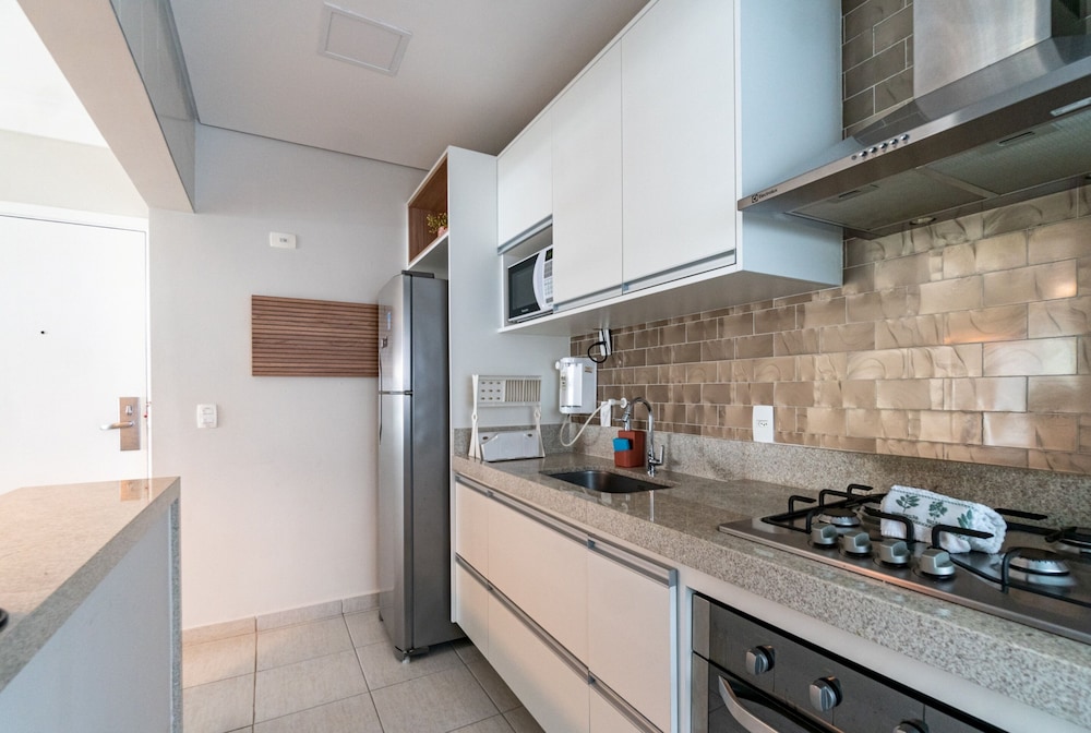 Apartamentos equipados. Condomínio com serviços e estrutura muito bons. Seguro. Estadia tornou a viagem em família muito agradável!