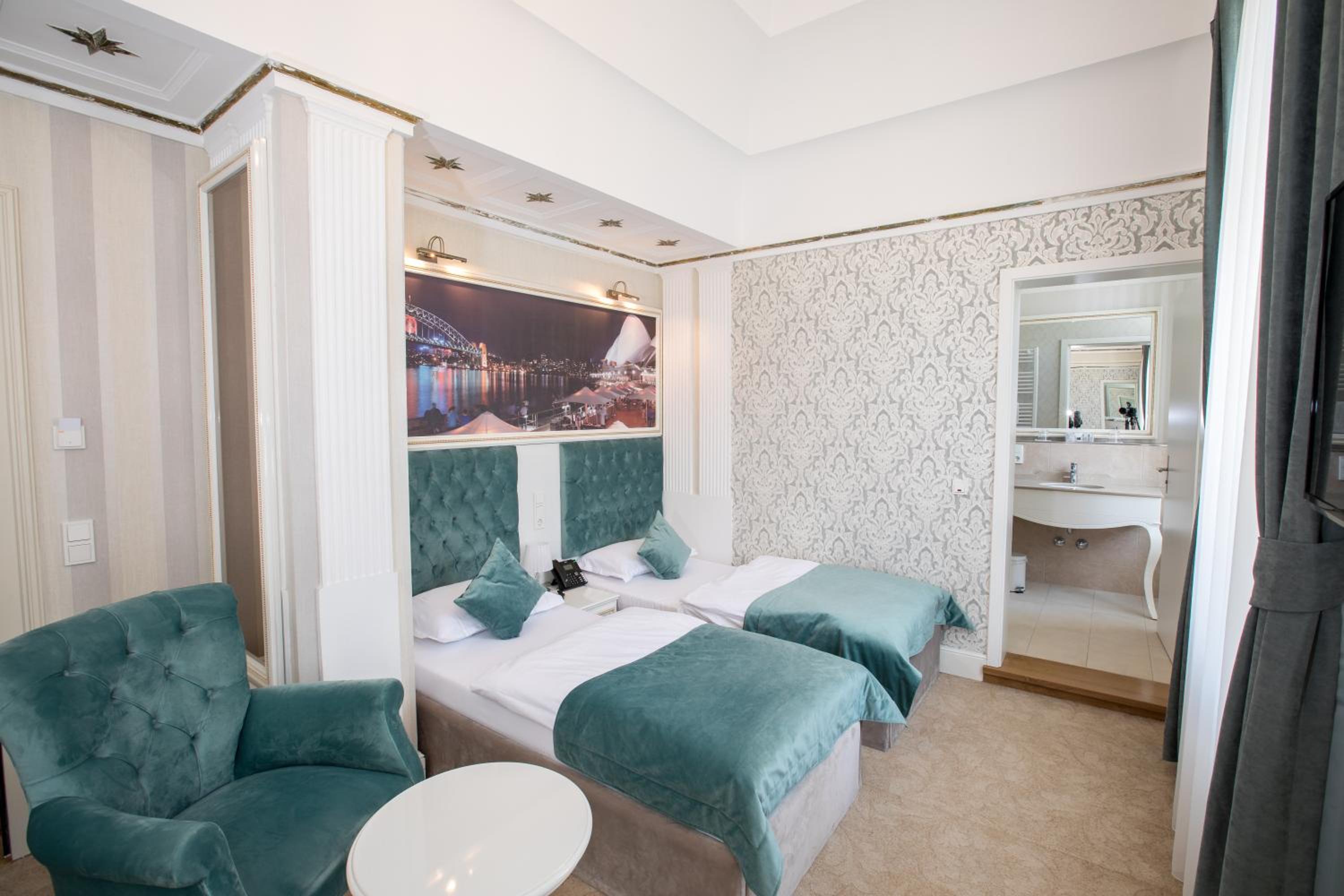 Hele grote kamer voor ons drieen. Ook grote badkamer met inloopdouche. Hele fijne bedden! Personeel zeer vriendelijk. Omdat het hotel geen gasten had was het ontbijt niet zo uitgebreid, maar voldoende. Het hotel ligt op steenworp afstand van het prachtige centrum van de stad, en vlak bij parkeergelegenheid en de snelweg. Aanrader!