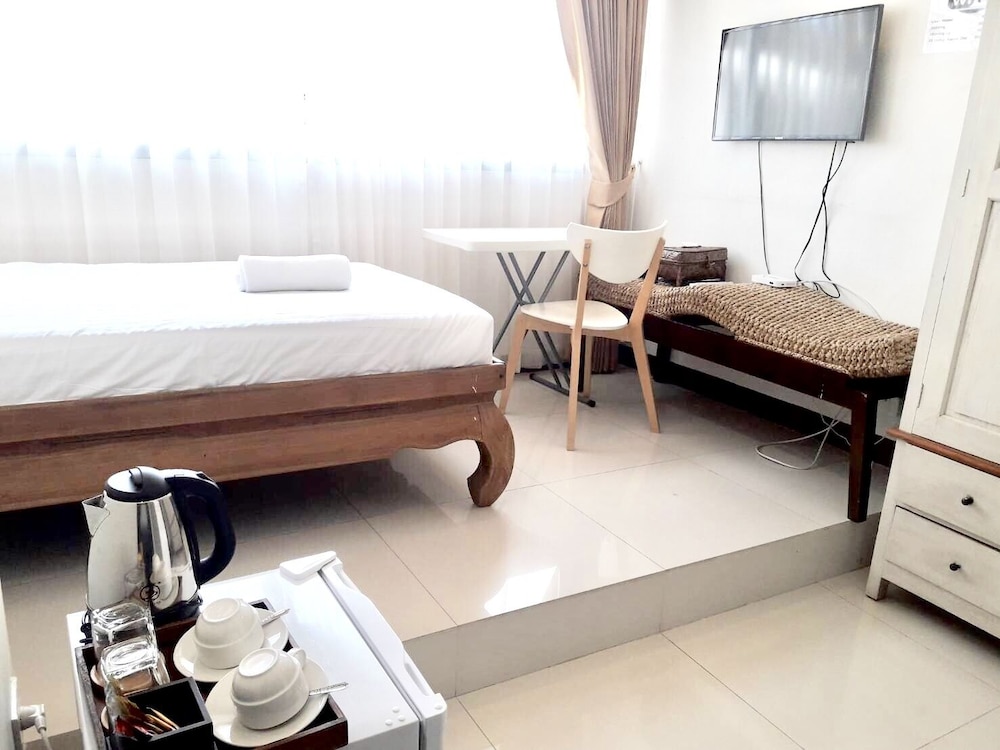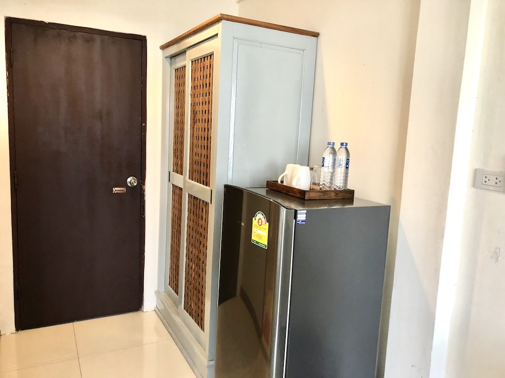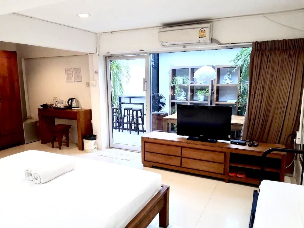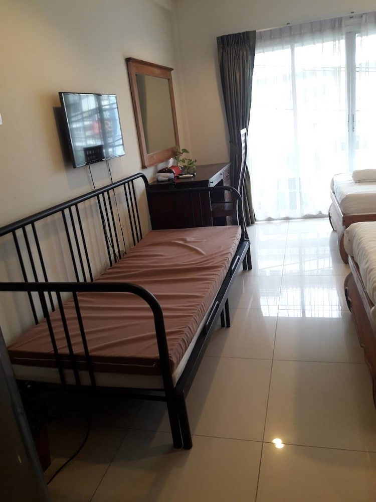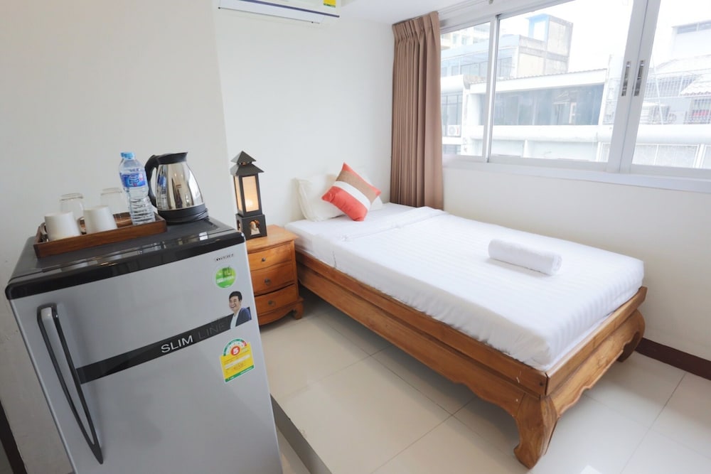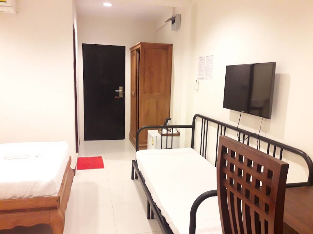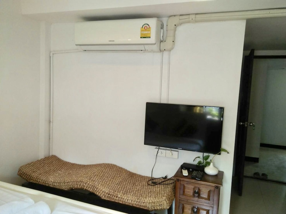 価格の安さは大きな魅力ではありますが、受付が無く、掃除の人に声をかけてチェックインする形です。英語が通じないので、タイ語⇄日本語の翻訳アプリを用意して行くとスムーズかと思います。デポジットは現金で300バーツ必要です。部屋の中は広さもあってバルコニーで喫煙もできるので長期滞在により適しているかと思います。バストイレとベッドルームは仕切りのドアがあり、バストイレの壁や床に白い粉が降っていてある程度年季を感じます。テレビは日本のチャンネルは見れません。