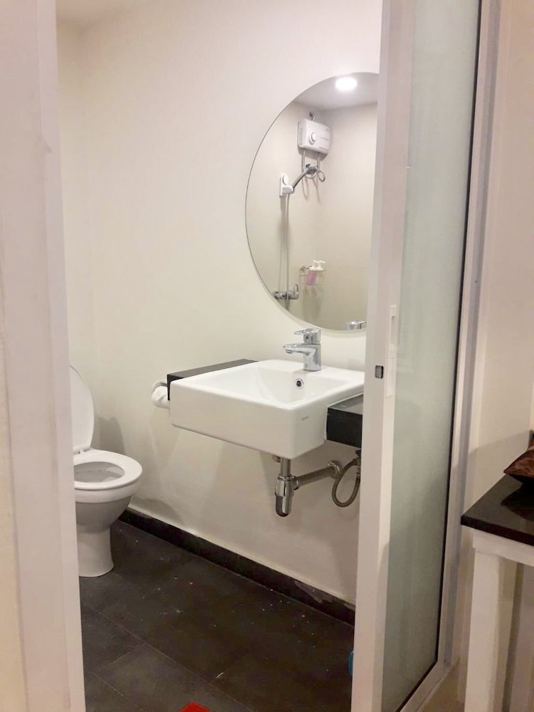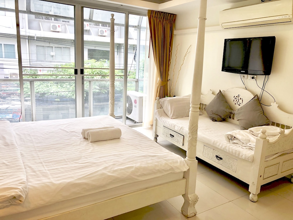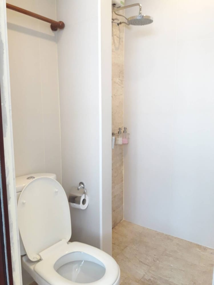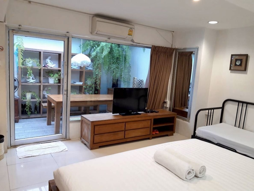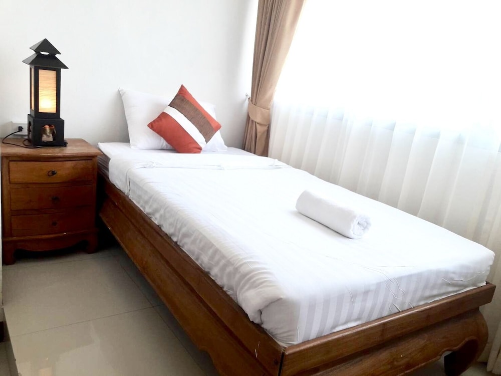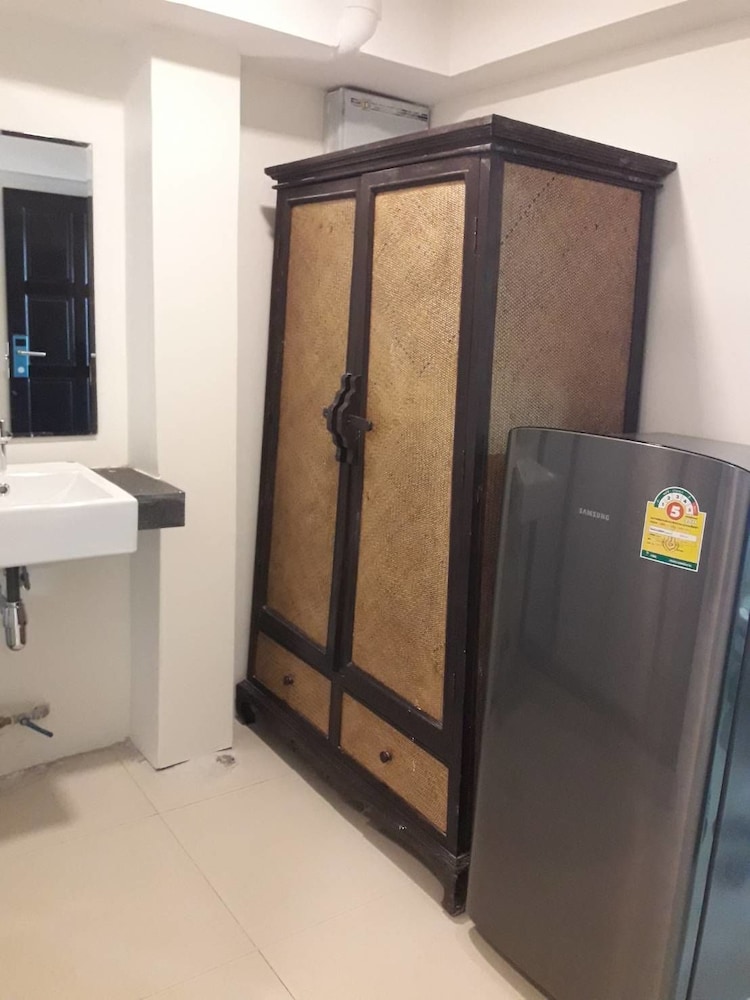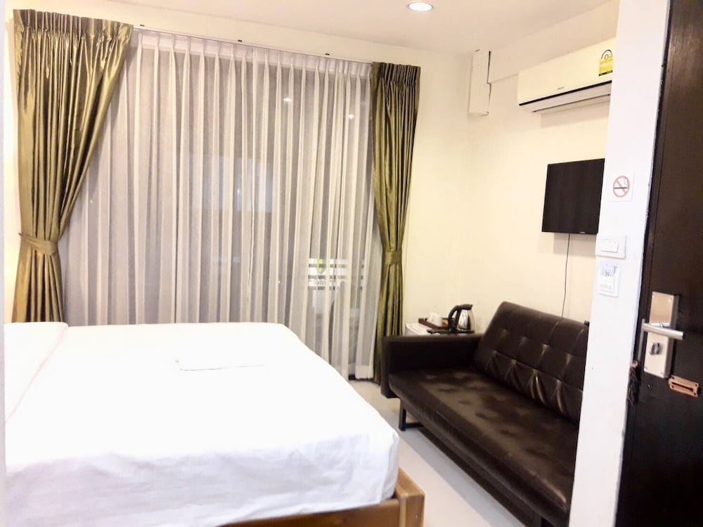 価格の安さは大きな魅力ではありますが、受付が無く、掃除の人に声をかけてチェックインする形です。英語が通じないので、タイ語⇄日本語の翻訳アプリを用意して行くとスムーズかと思います。デポジットは現金で300バーツ必要です。部屋の中は広さもあってバルコニーで喫煙もできるので長期滞在により適しているかと思います。バストイレとベッドルームは仕切りのドアがあり、バストイレの壁や床に白い粉が降っていてある程度年季を感じます。テレビは日本のチャンネルは見れません。