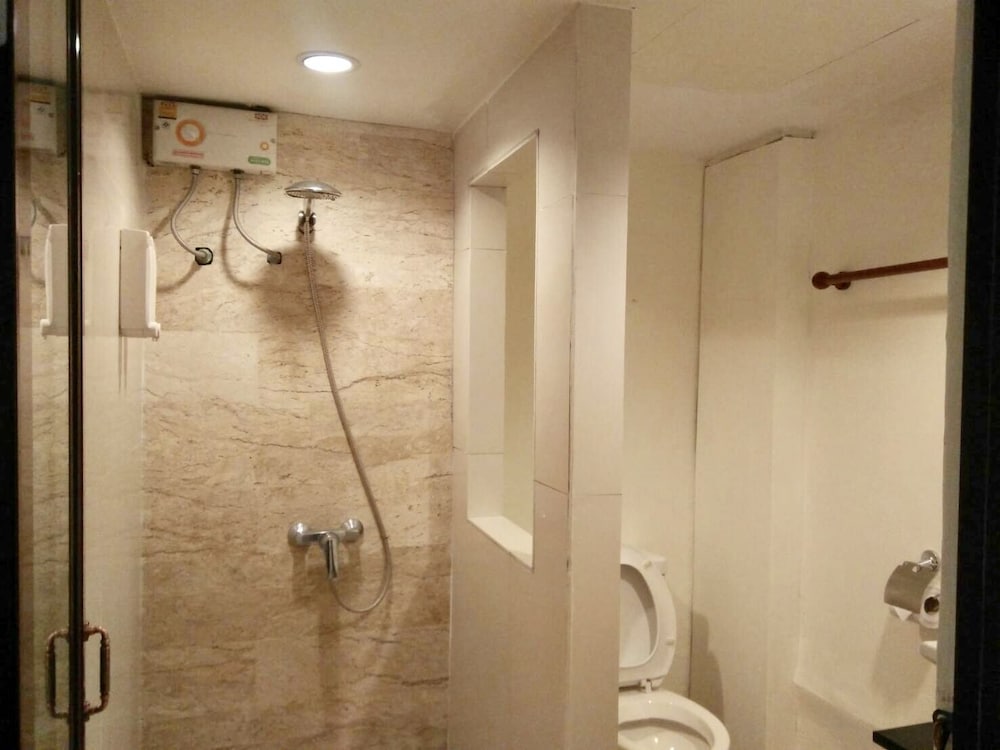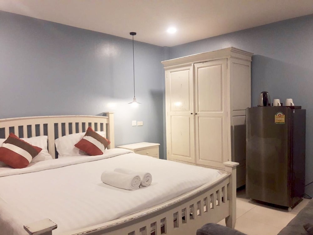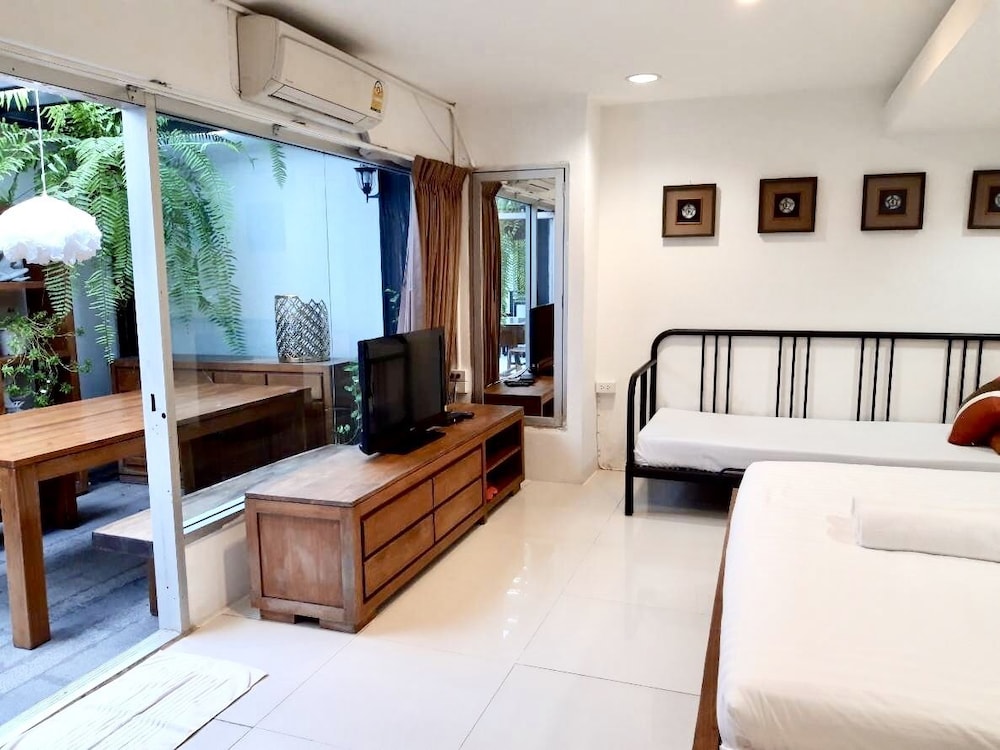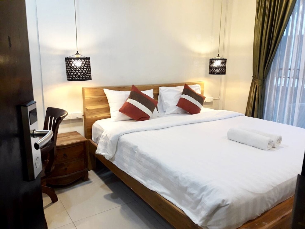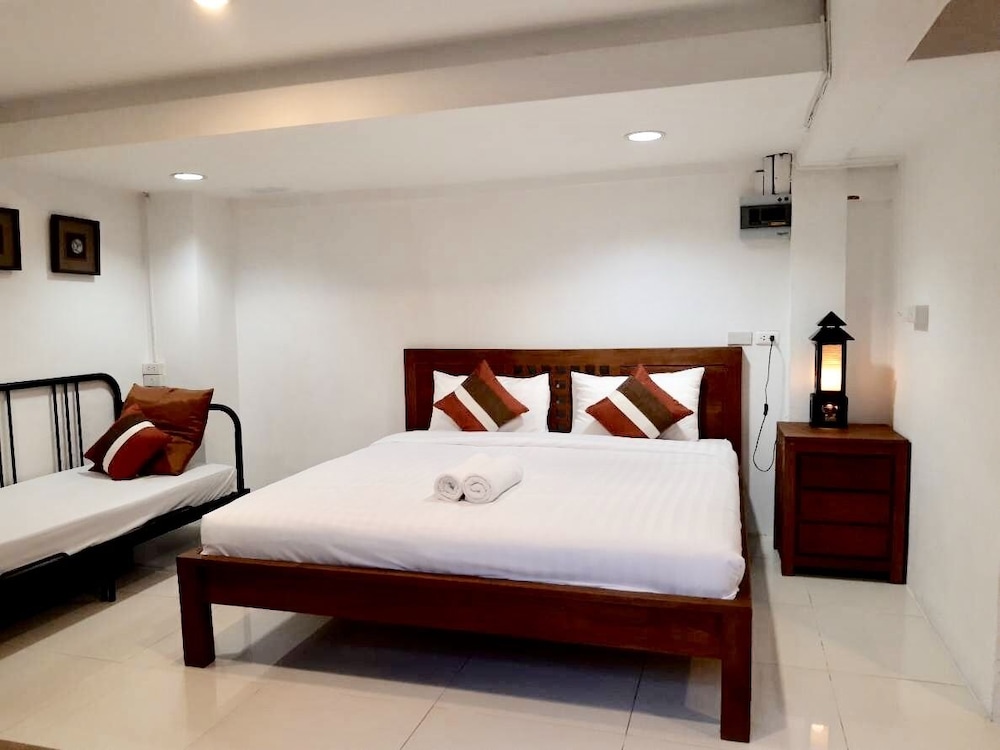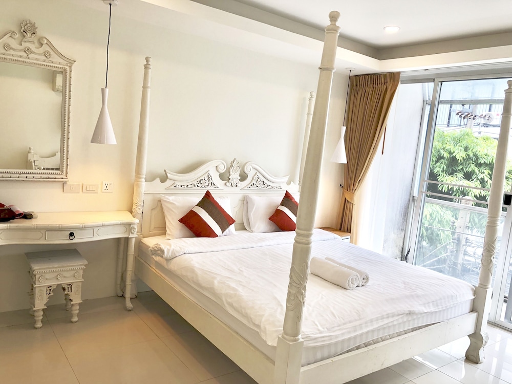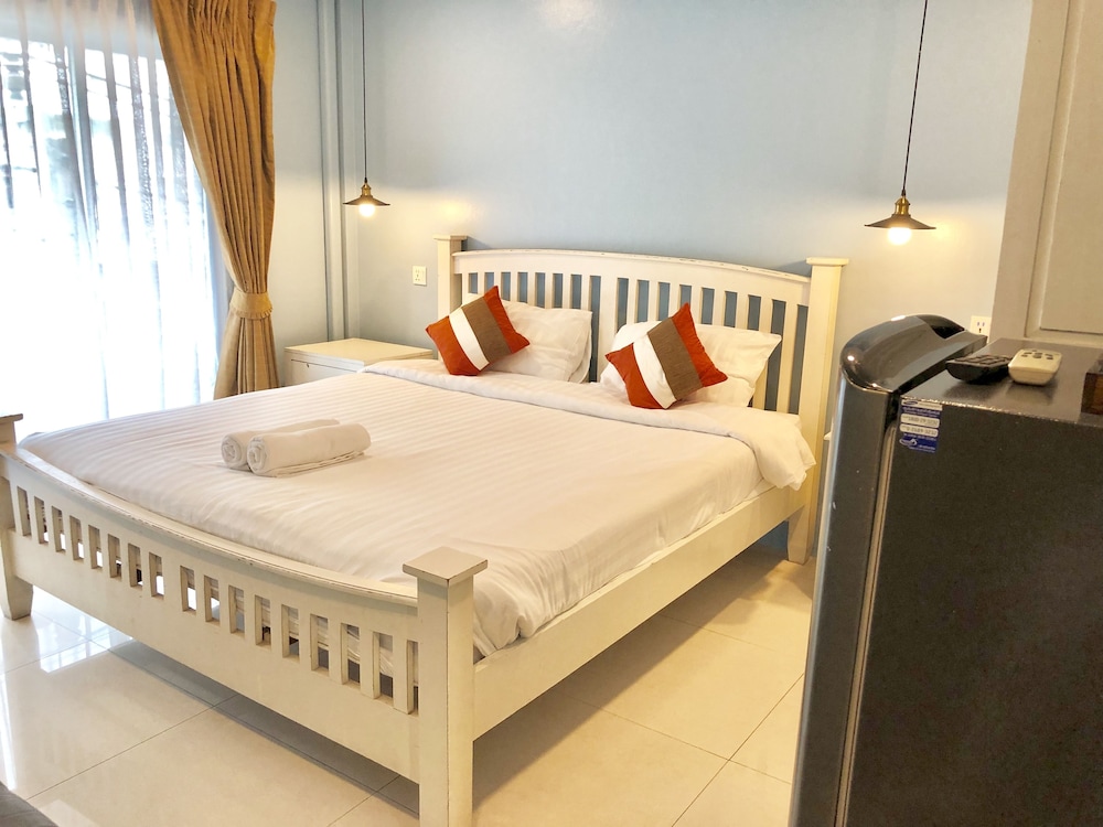 価格の安さは大きな魅力ではありますが、受付が無く、掃除の人に声をかけてチェックインする形です。英語が通じないので、タイ語⇄日本語の翻訳アプリを用意して行くとスムーズかと思います。デポジットは現金で300バーツ必要です。部屋の中は広さもあってバルコニーで喫煙もできるので長期滞在により適しているかと思います。バストイレとベッドルームは仕切りのドアがあり、バストイレの壁や床に白い粉が降っていてある程度年季を感じます。テレビは日本のチャンネルは見れません。