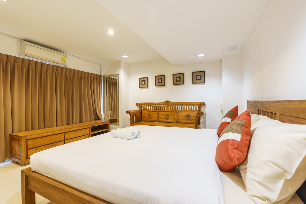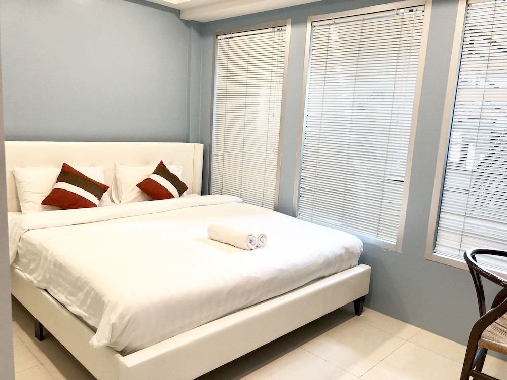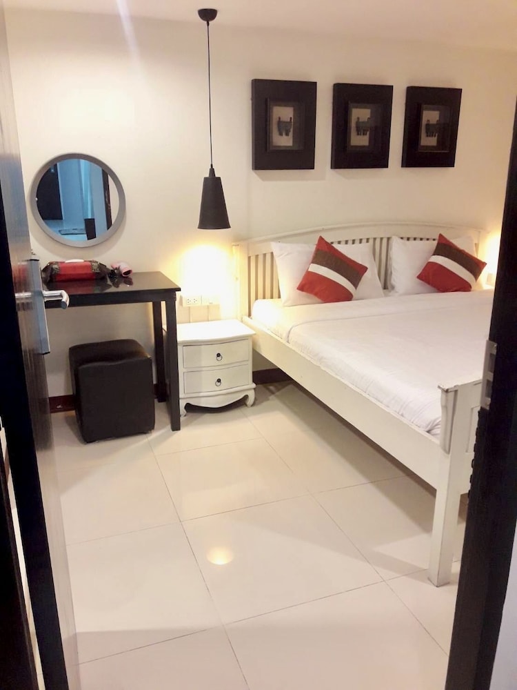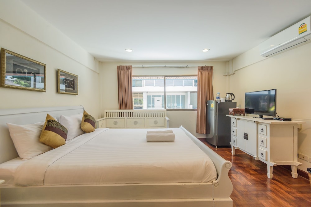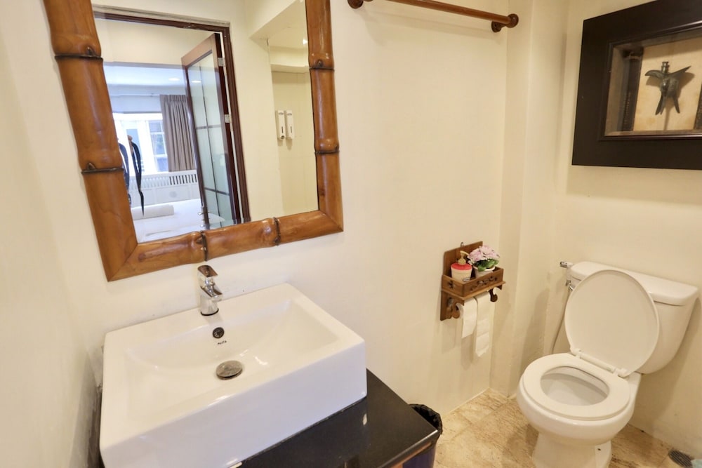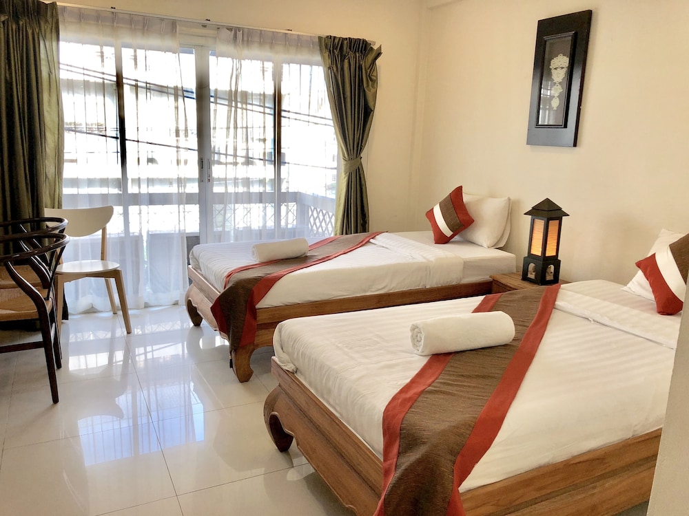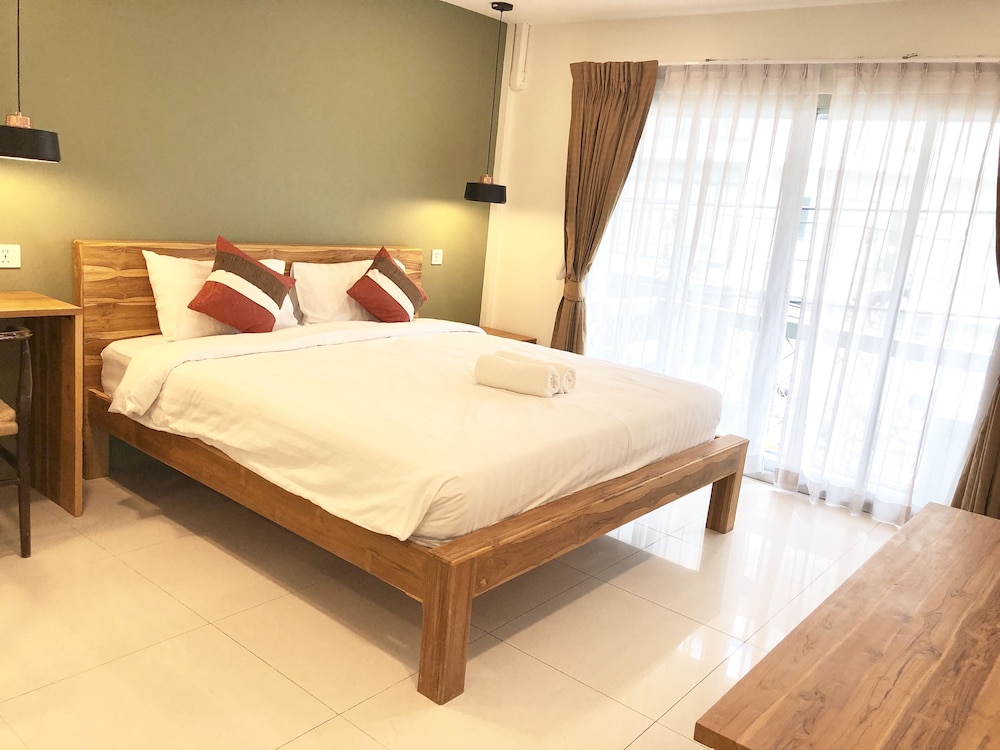 価格の安さは大きな魅力ではありますが、受付が無く、掃除の人に声をかけてチェックインする形です。英語が通じないので、タイ語⇄日本語の翻訳アプリを用意して行くとスムーズかと思います。デポジットは現金で300バーツ必要です。部屋の中は広さもあってバルコニーで喫煙もできるので長期滞在により適しているかと思います。バストイレとベッドルームは仕切りのドアがあり、バストイレの壁や床に白い粉が降っていてある程度年季を感じます。テレビは日本のチャンネルは見れません。