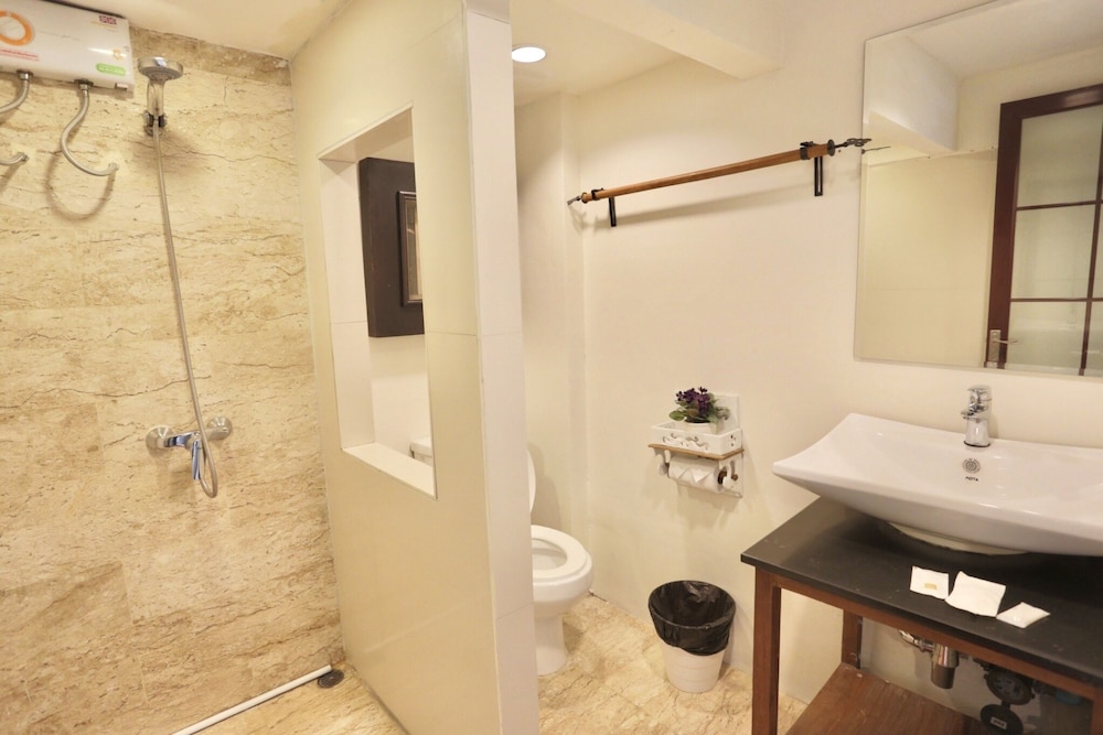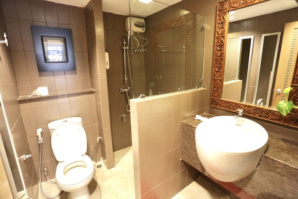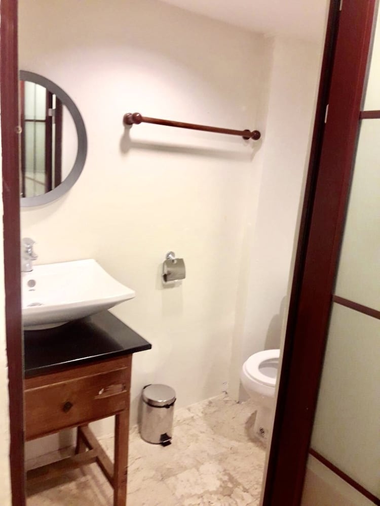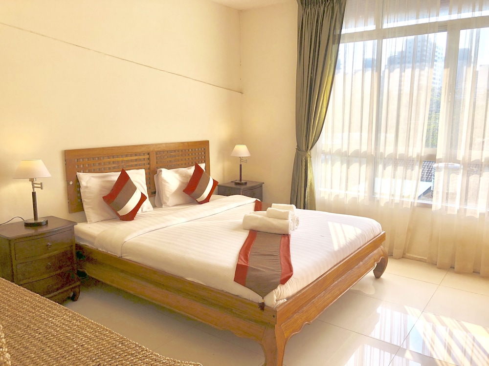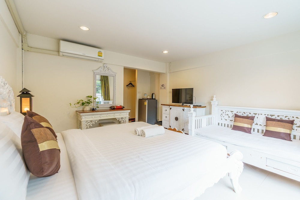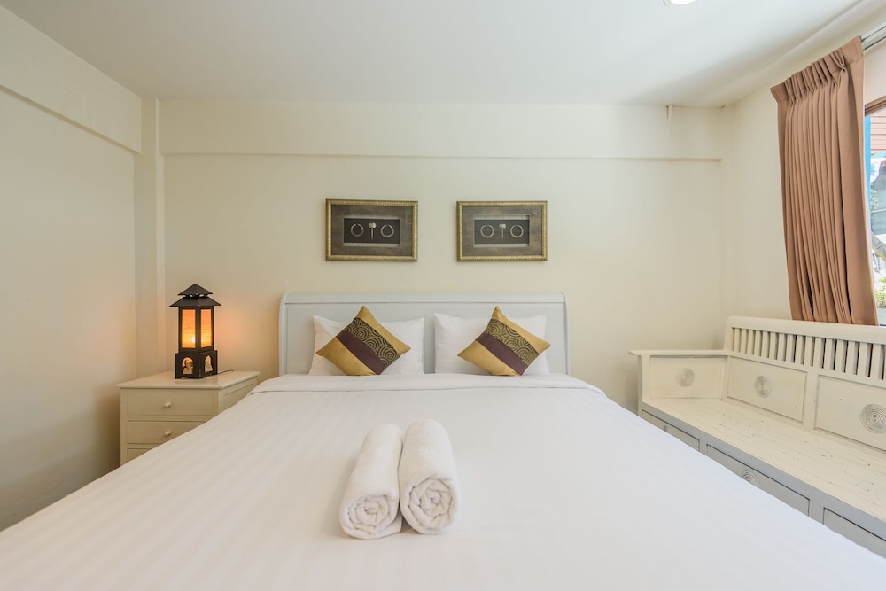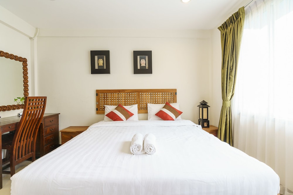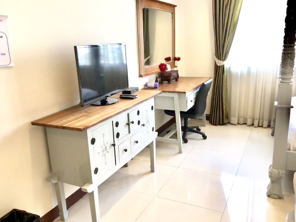 価格の安さは大きな魅力ではありますが、受付が無く、掃除の人に声をかけてチェックインする形です。英語が通じないので、タイ語⇄日本語の翻訳アプリを用意して行くとスムーズかと思います。デポジットは現金で300バーツ必要です。部屋の中は広さもあってバルコニーで喫煙もできるので長期滞在により適しているかと思います。バストイレとベッドルームは仕切りのドアがあり、バストイレの壁や床に白い粉が降っていてある程度年季を感じます。テレビは日本のチャンネルは見れません。