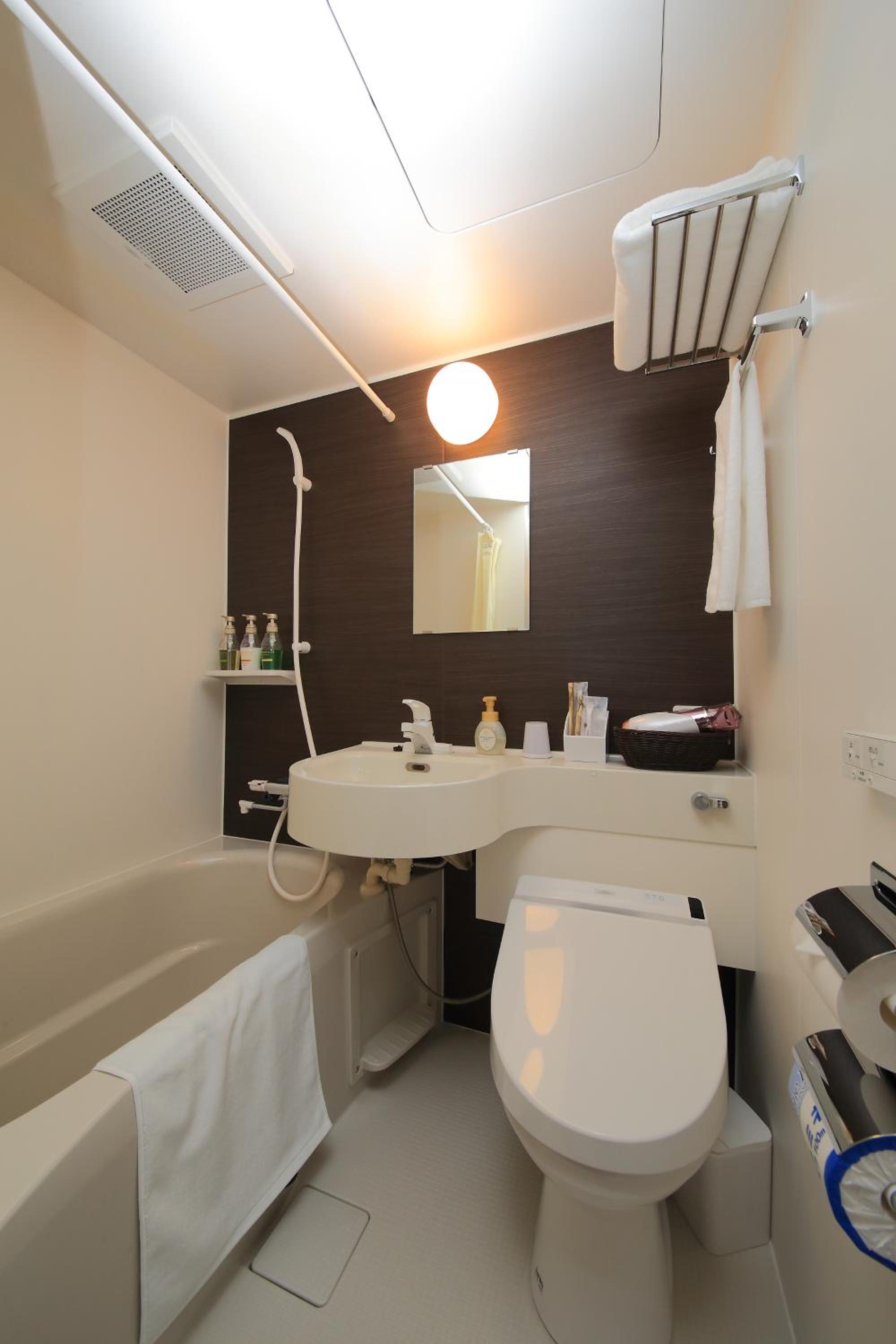 The rooms at this Japanese-style business hotel feature air conditioning, free WiFi, and a flat-screen TV. Guests can relax in the private bathroom with a bath and a hair dryer, and make use of the fridge available in all rooms.