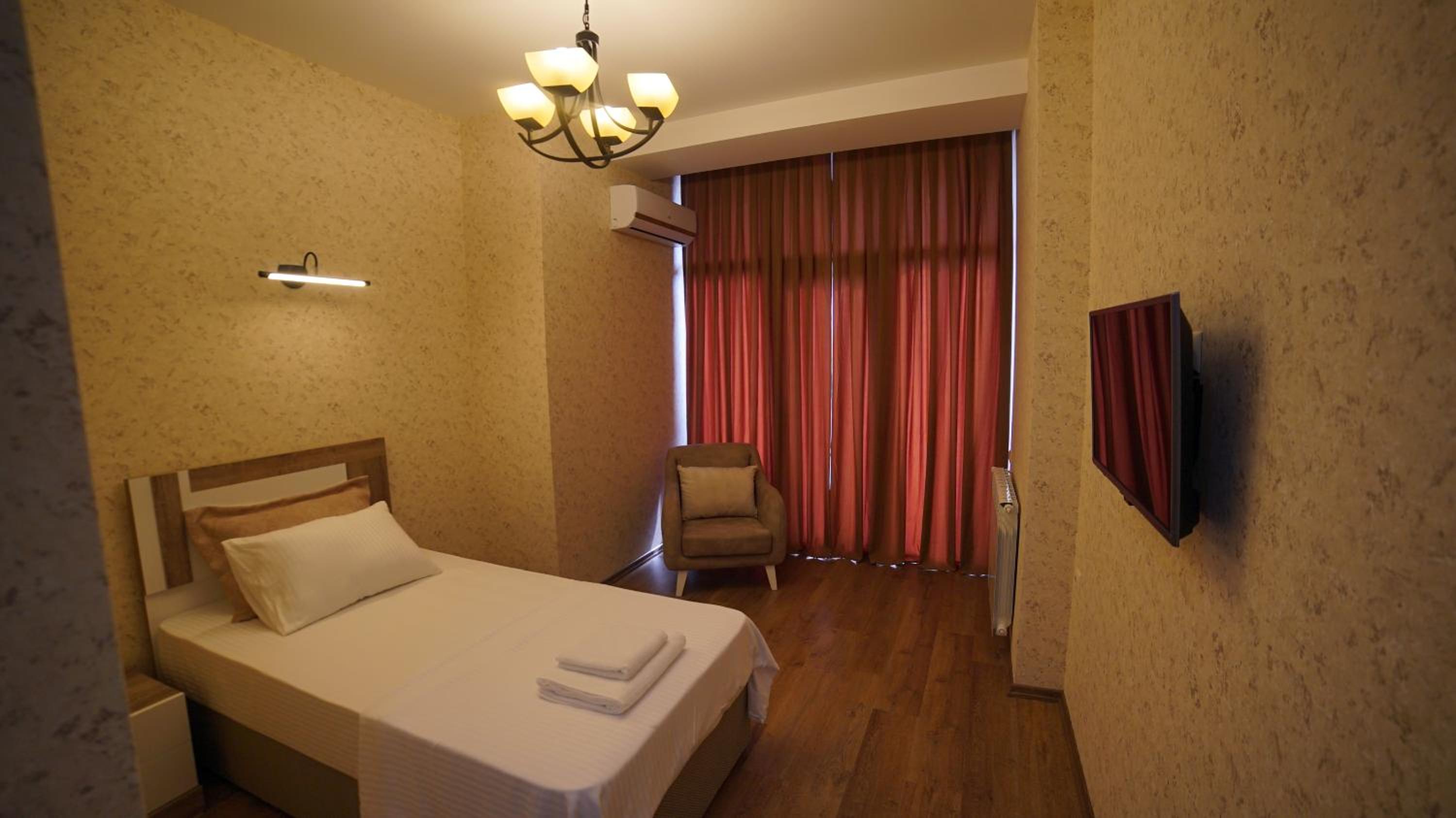 Уборка в номере была не ежедневной, приходилось просить чтоб забрали мусор с ведра, завтрак без фруктов, иногда были остатки с вечернего ужина, яичница или гренки готовились после 9:00 часов, телевидение не разнообразное, только местное и азербайджанское, интернет слабый, воды для питья нет в номере приходилось ходить на ресепшен набирать с кулера, нет сушилки на балконе.