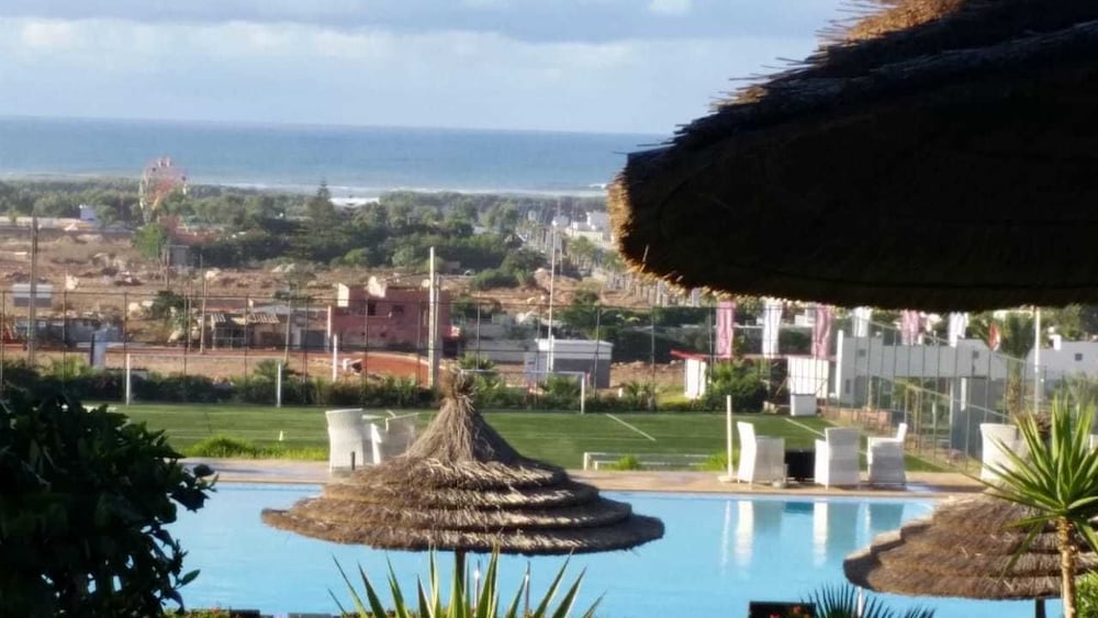 A very bizarre situation. First off this is NOT a hotel - it is more akin to the palatial estate of a pro athlete or head of a cartel. When I arrived I had to walk around the entire property twice before finally encountering a small French Moroccan man and two housekeepers who spoke no English. Even though I had paid in advance they had no record of my paying or of my reservation. The housekeeper's made a point giving me a tour of the larger bedrooms of the main house where I would NOT be staying and directed me to, in their words, Le Bungalow. A block room in the exterior concrete Courtyard which was more akin to a servant's quarters .Even though there was a large Wi-Fi router in the main house regular WiFi was non-existent and the Wi-Fi password they gave me for guest(s) was useless. The pool area was nice but had not been cleaned and sometime so even though the weather was perfect to use the pool.... it's sanitary condition was questionable. The property sits on an elevated Hill overlooking the Atlantic Ocean with a marvelous View. Strangely, given the meticulous upkeep of the main residence... I was the ONLY person staying there and my presence was treated as more of a distraction by the staff taking away from there cleaning and maintenance of the main house for an unknown future Patron. It really. seems a shame because the property is being wasted in its current state.