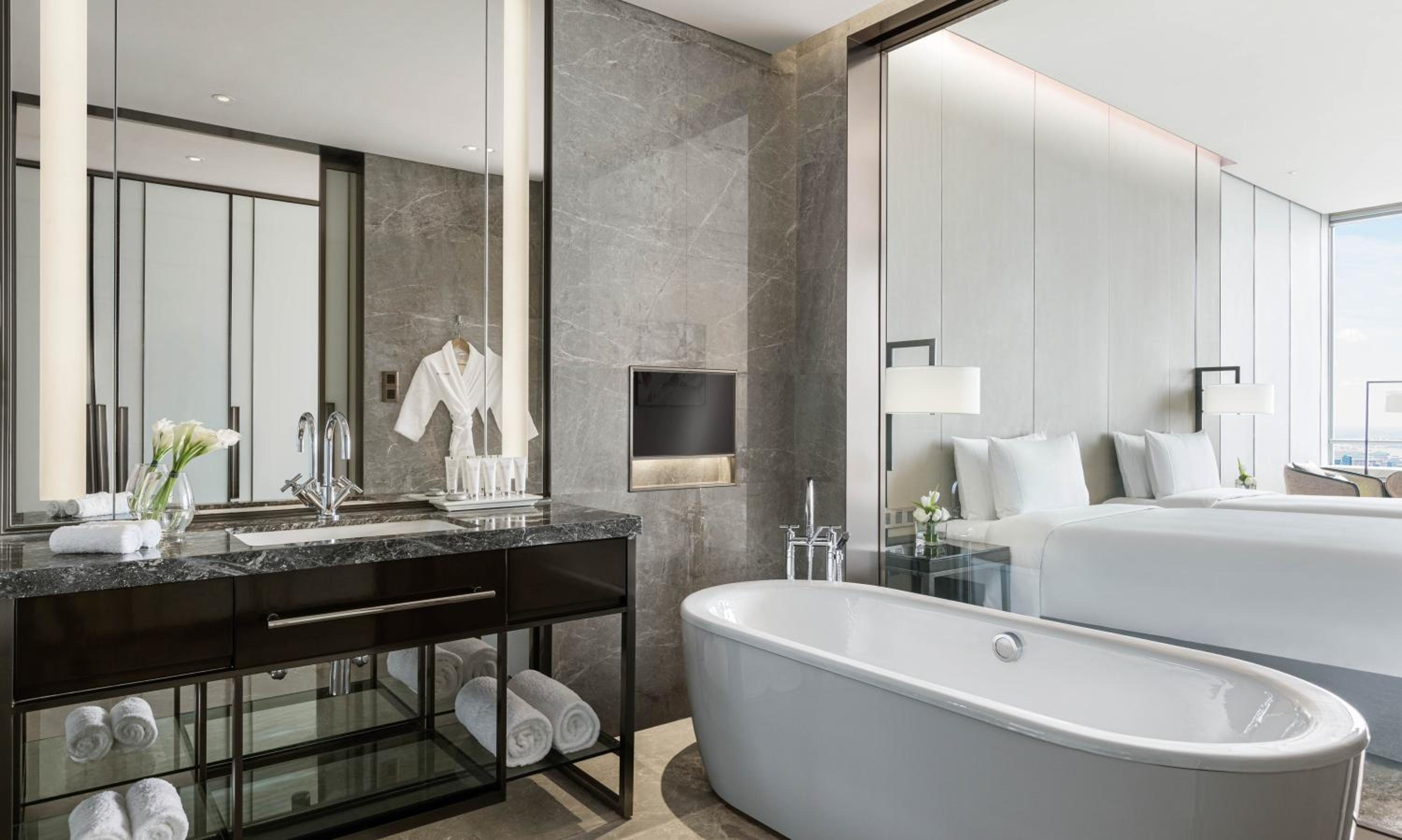 Personnel très accueillant et attentif, la chambre au 91eme étage avec une vue sur la ville exceptionnelle.