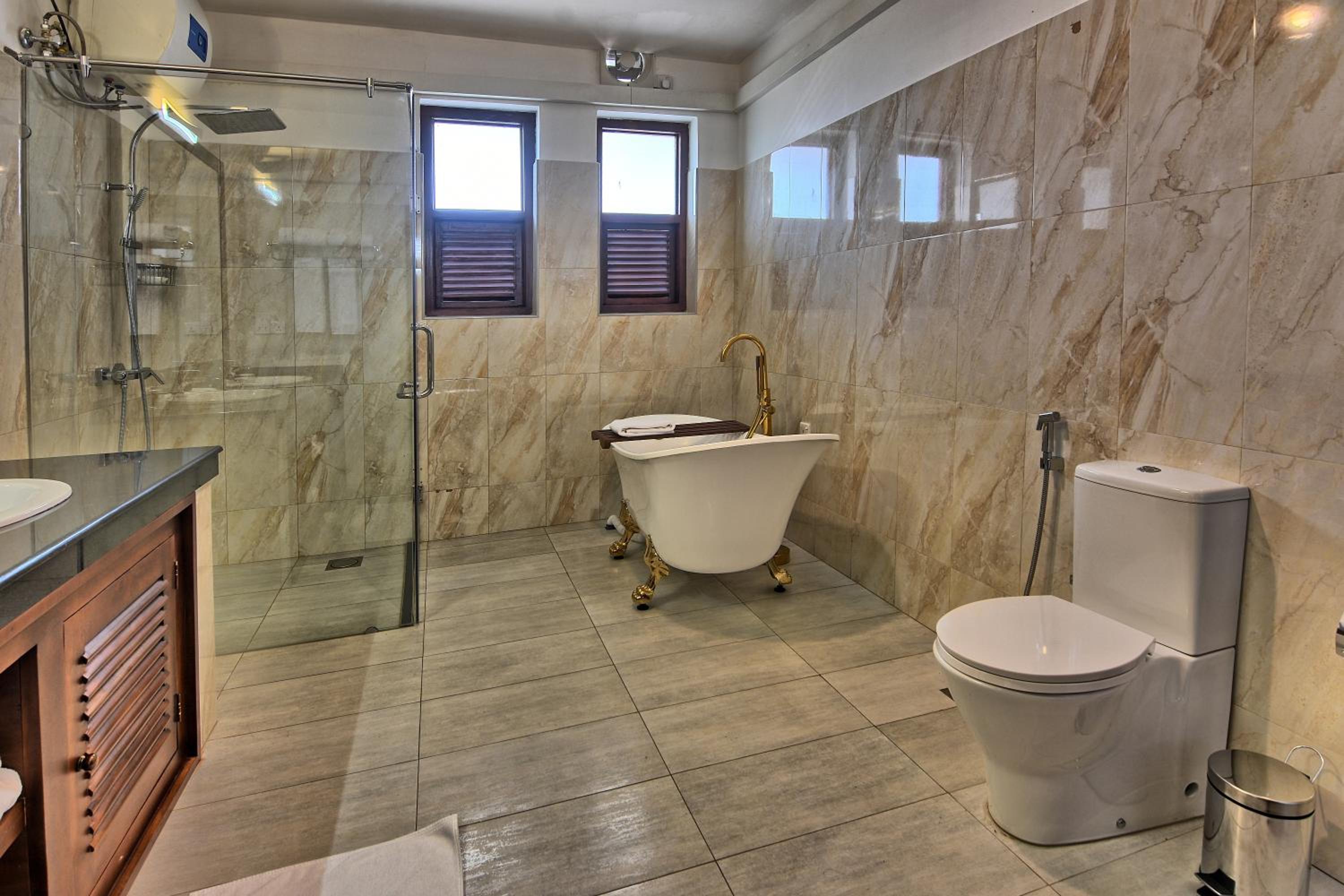 The Heritage Hotel Galle Fort offers elegantly designed 5-star rooms with modern amenities such as flat-screen TVs, minibars, and free WiFi. Guests can enjoy breathtaking city views from select rooms and relax in comfort with the provided safety deposit boxes.