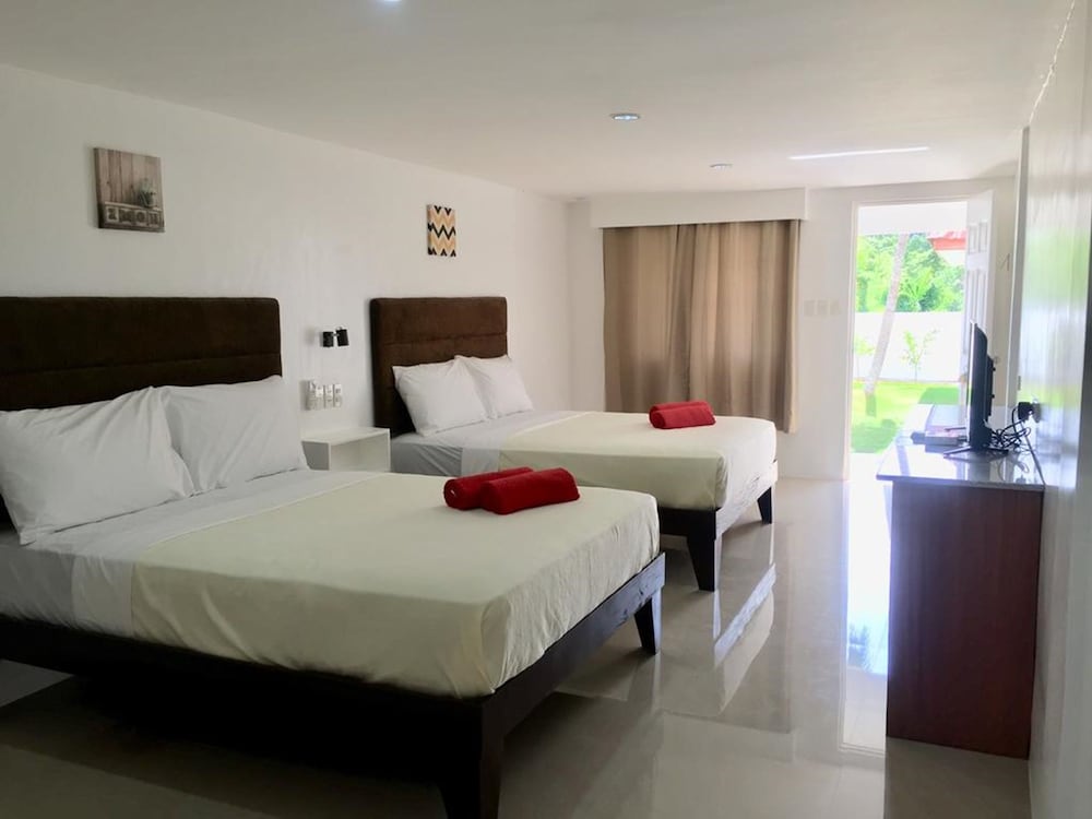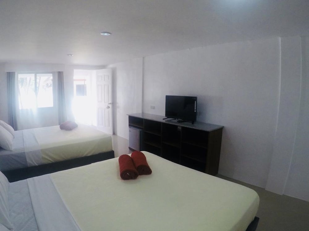 我入住的是兩張雙人床、一張單人床、一張沙發床的房型。床舖很大,睡更多人也沒問題。只是房間只有一間衛浴,人多時使用仍會有些困擾,急需時可以到check-in櫃台旁的廁所使用。宿霧與邦勞島都使用電熱水器,供水量沒有很大,但因為氣候關係還是夠用。房間很乾淨與舒適,入住兩晚也會有人來幫忙整理房間。進入飯店需要走小路,如果拖著行李可能會覺得有些辛苦。如果需要帶路與載行李的話,只要把飯店的名字秀給附近的tricycle司機看都會知道。