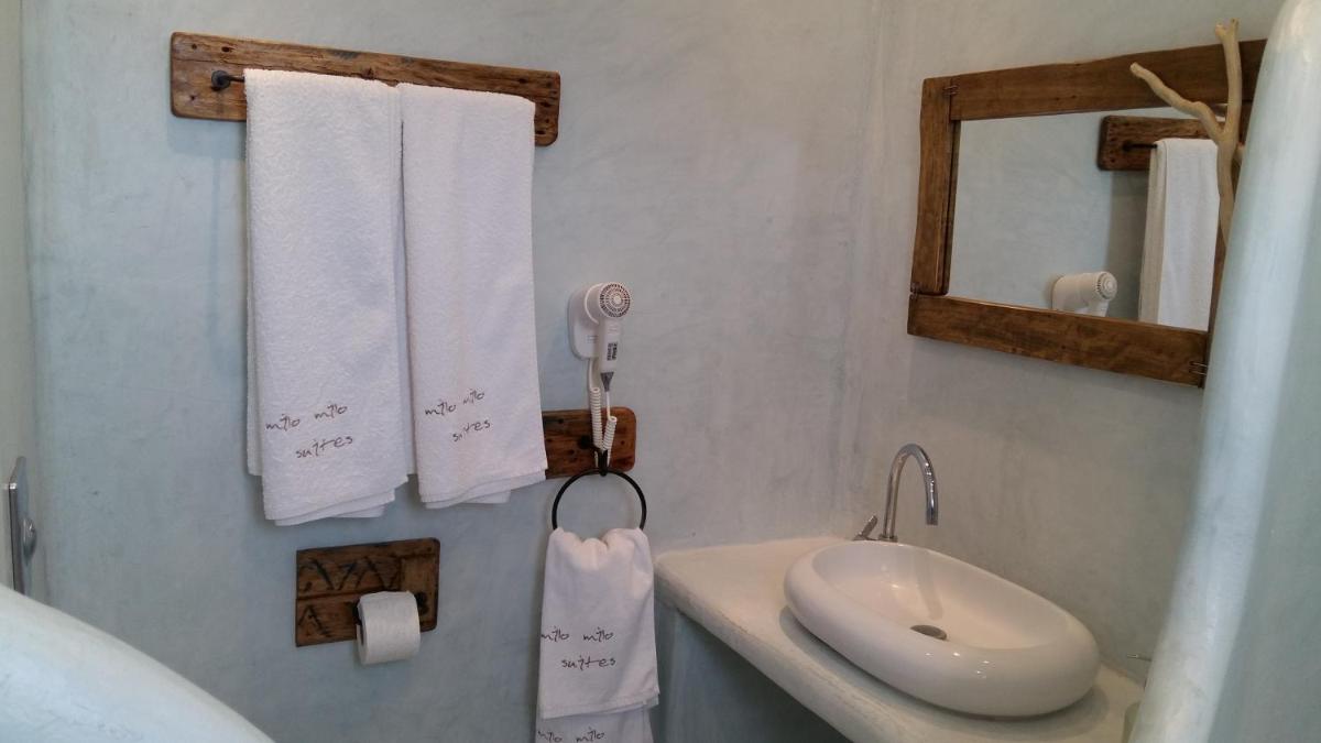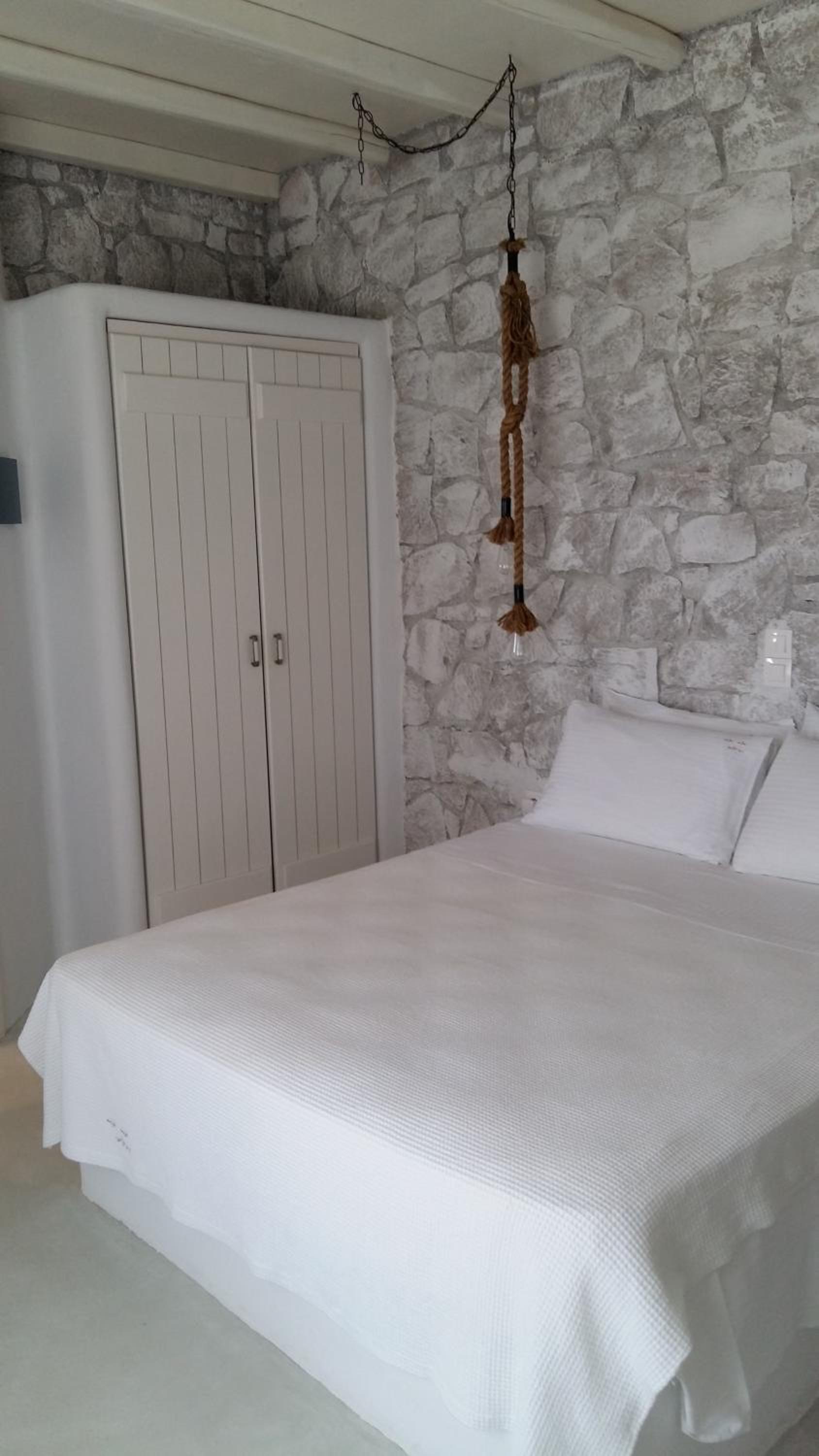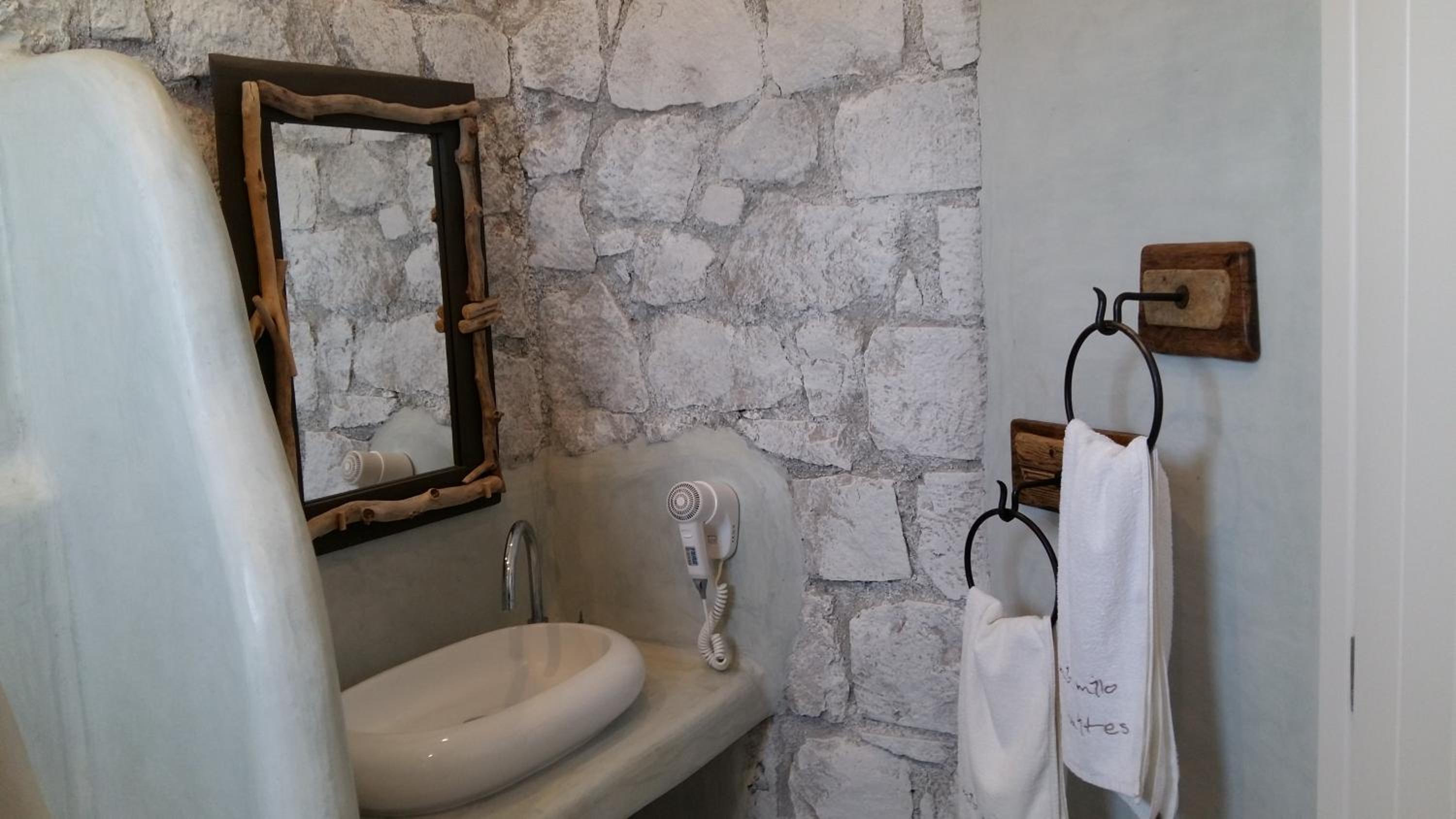 Elegant Cycladic Architecture: Experience the charm of stone-built Milo Milo Suites, blending seamlessly with the Cycladic design. Adorned with white wooden furnishings and rain showers, each room exudes elegance.