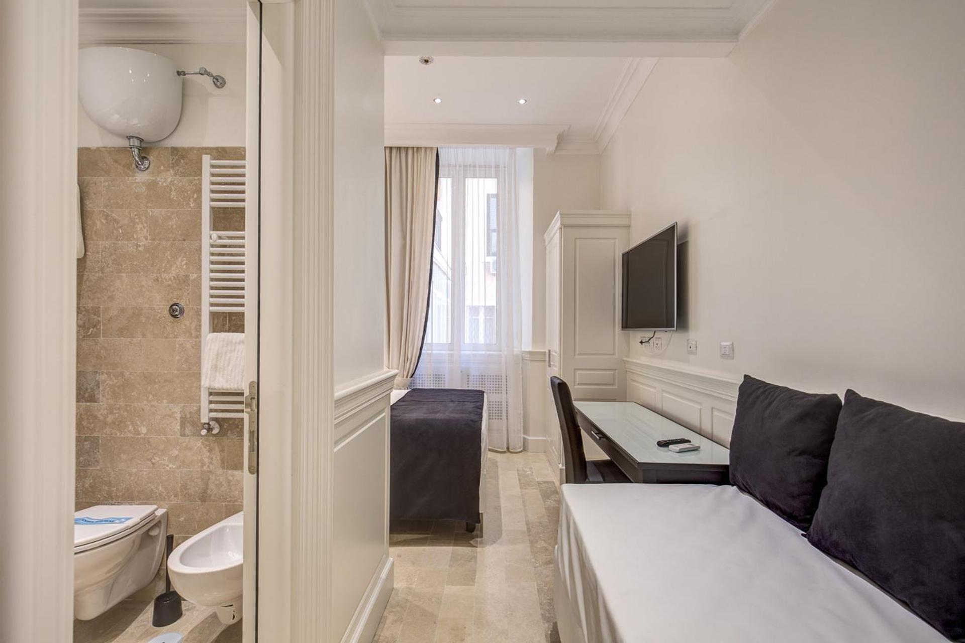 Hotel dei Quiriti Suite offers modern-style rooms with air conditioning, Smart flat-screen TVs, and private bathrooms with toiletries and hairdryers. Enjoy a comfortable stay with all the necessary amenities provided.