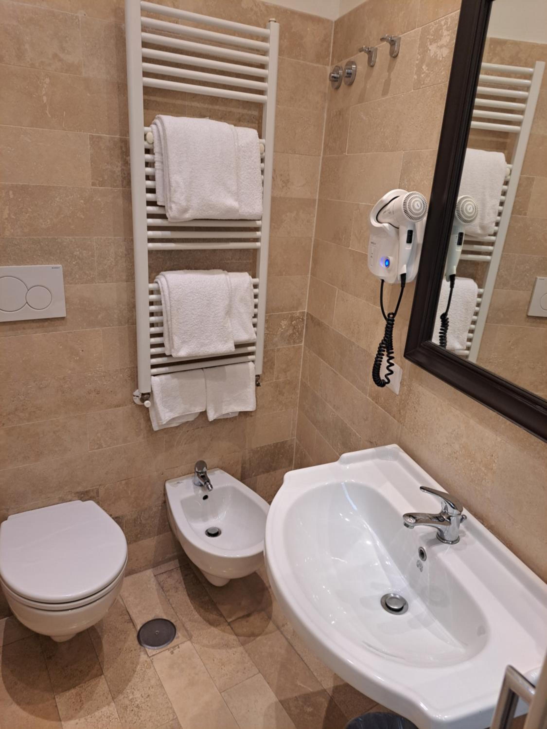 Il bagno non ha il kit di cortesia ma due dispenser di sapone uno in doccia e uno al lavandino