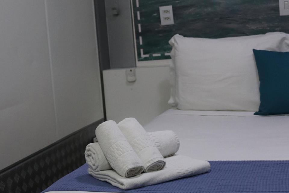 O banheiro não possui ducha higiênica no vaso sanitário. O chuveiro não dá opção para banho sem molhar o cabelo. A pia é antiga e muito pequena. Não há espelho para corpo inteiro. Apenas um espelho localizado no banheiro. Não possui armário, apenas uma arara com cabides.O ar condicionado fica baixo e o ar pega diretamente a mesinha do quarto.