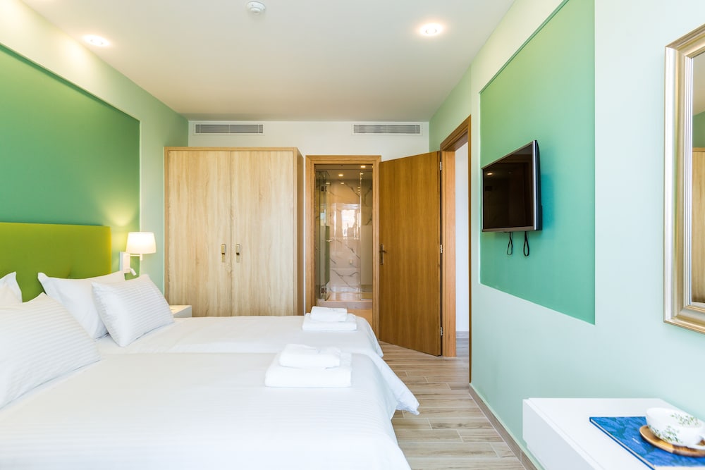 La habitación grande, nueva y muy bien equipada y cuidada. El personal, como en toda Grecia, muy amable y atento. Estuvimos sólo una noche, así que no disfrutamos mucho de las instalaciones, pero tienen piscina y una terraza para comidas y desayunos en la que se estaba muy a gusto. Fácil aparcar cerca porque está un poco lejos de la zona turística del puerto para ir a pie